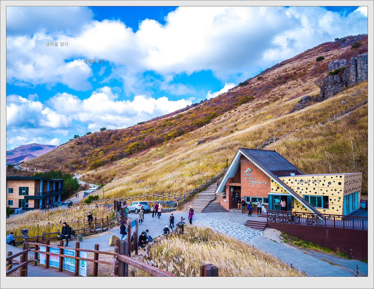 간월재 억새평원은 900m 높이의 고개 정상에 있기 때문에 억새를 배경으로 한 알프스풍의 풍경이 특히 일품이다.