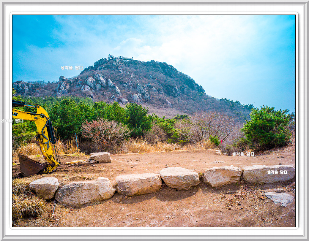 그래서 계단으로 오르면 정상이 300m쯤 남은 지점이지만 공사 때문에 금샘방향으로 우회를 해야 했다.