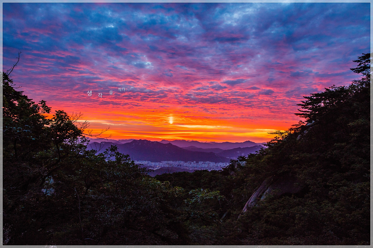 거대한 서울 시내와 서울을 둘러싸고 있는 산들,