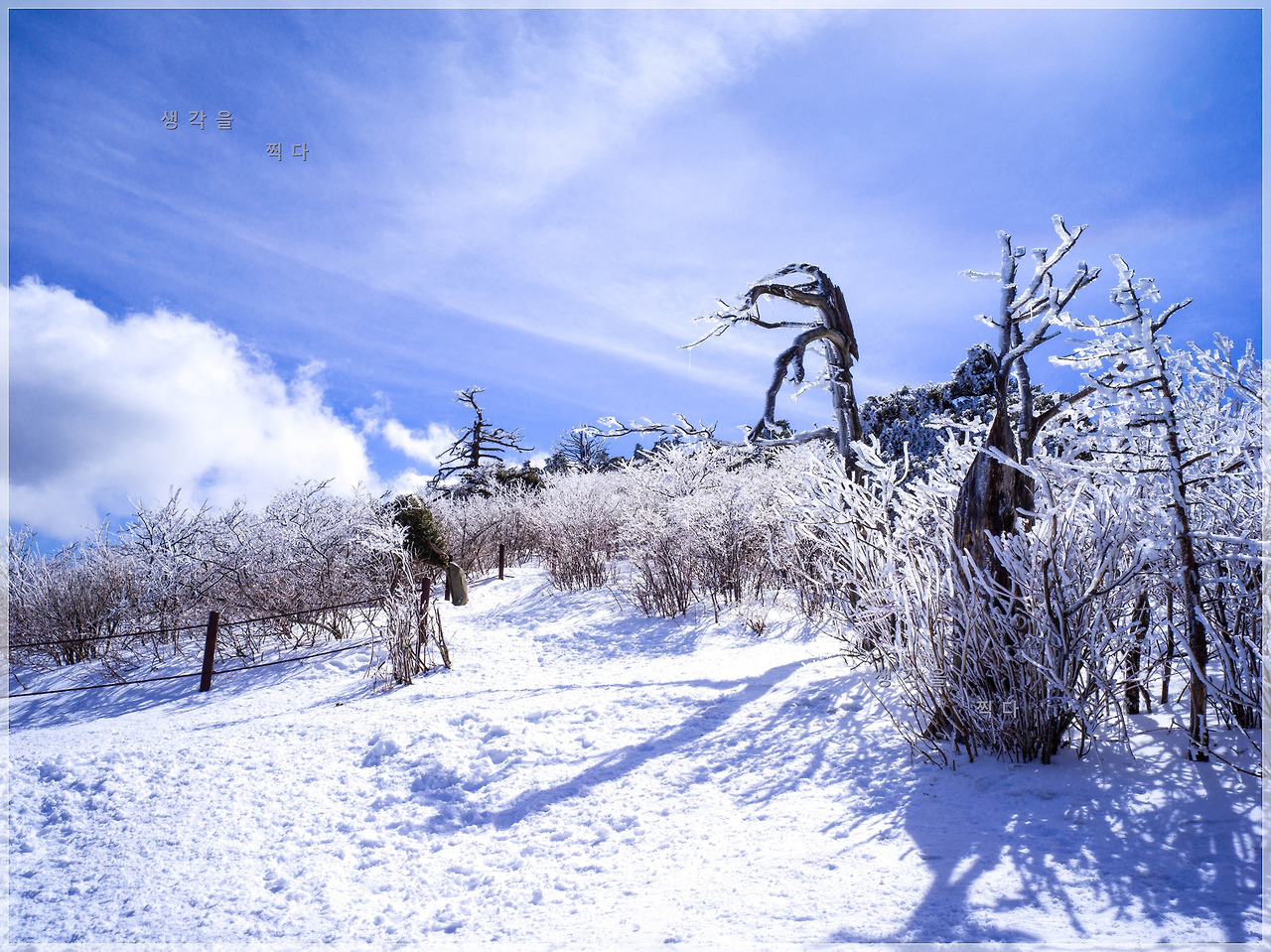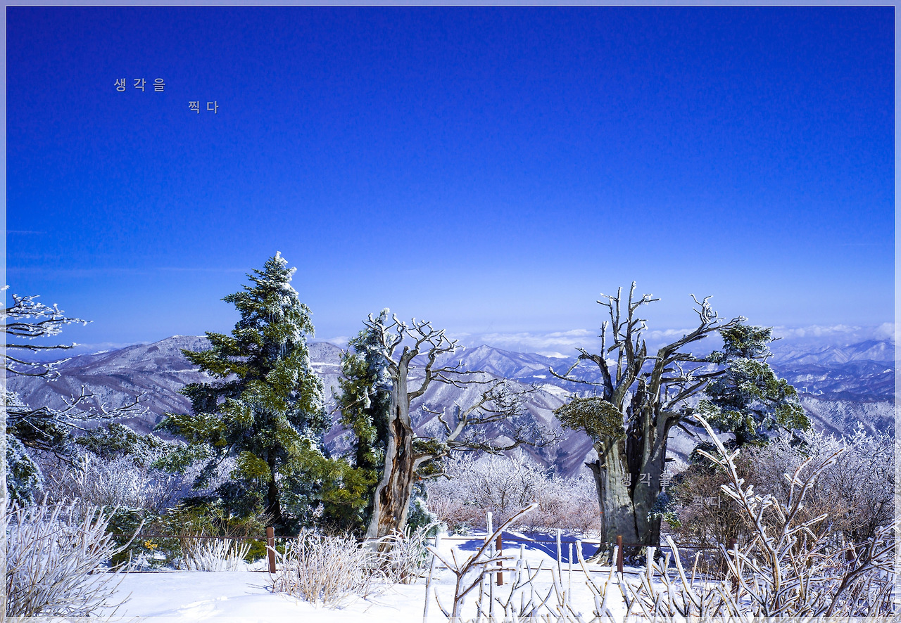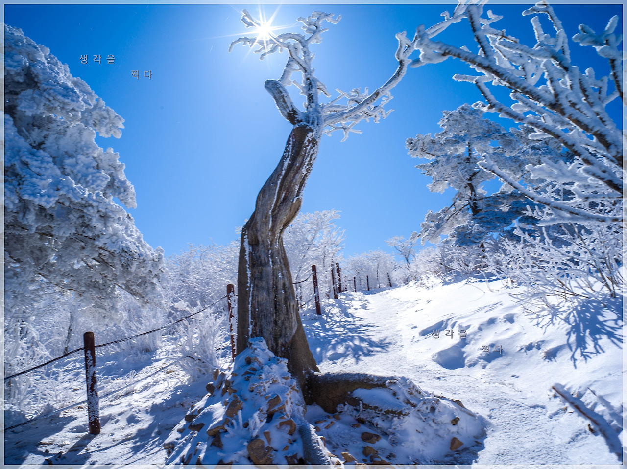 순백의 겨울 풍경, 예전엔 겨울이면 문밖에만 나서면 보고 느낄 수 있었던 풍경인데 이제 높은 산에나 올라야 볼수 있는 풍경이 되어버렸다.