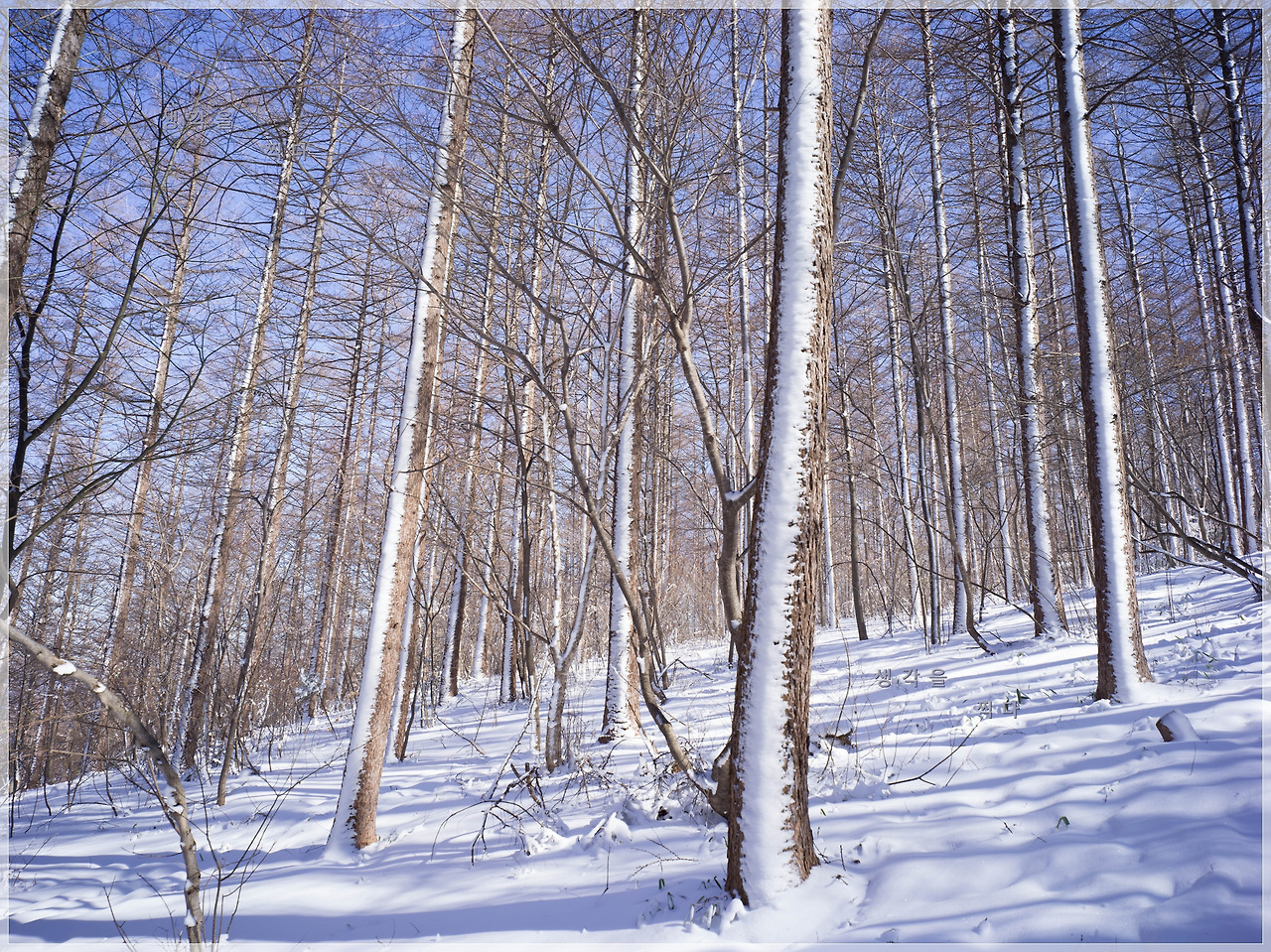 위를 올려다보자 기하학적인 무늬의 눈꽃이 시리도록 파아란 하늘에 아름다운 수를 놓은듯 했다.