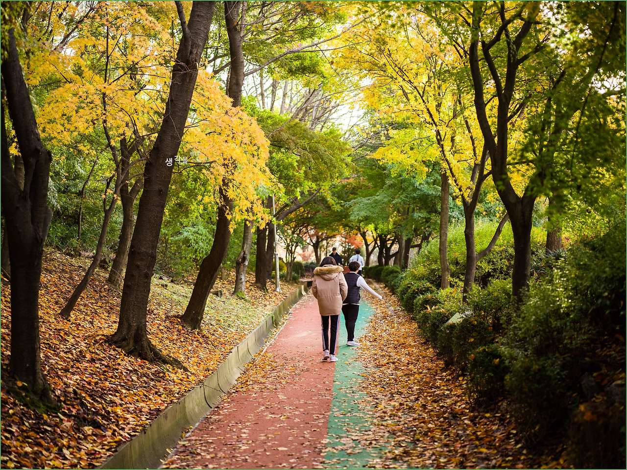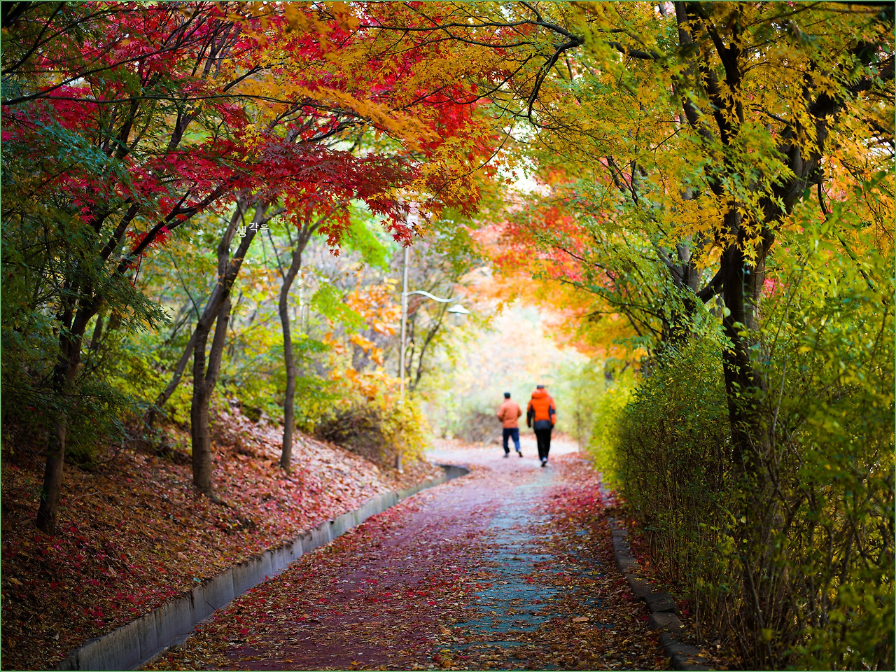 그런데 환상적인 단풍터널을 걷는 사람들의 모습이 낭만적으로 보이지 않고 오히려 초라해 보였다.