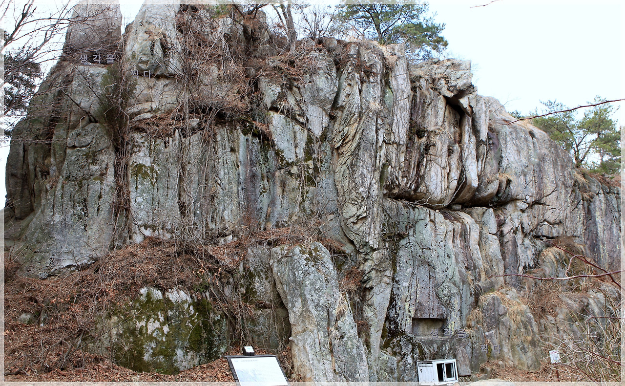 다시 10여분을 오르면 선으로만 여섯분의 불상을 새겨놓은 커다란 신령스런 바위가 나온다.