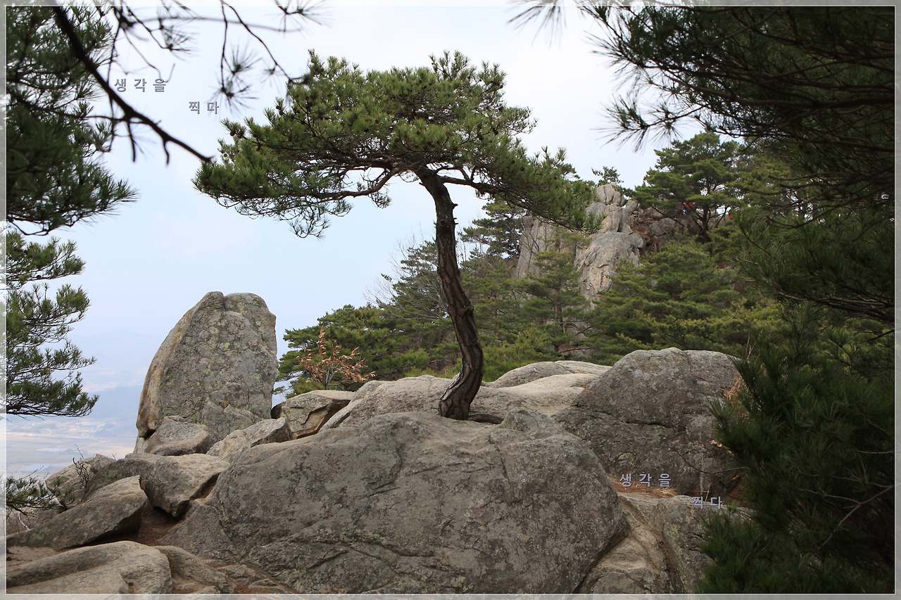 금송정에서 잠시 쉬어가는 길에 바위에 터 잡은 꿋꿋한 소나무 한그루가 발길을 멈추게 한다.
