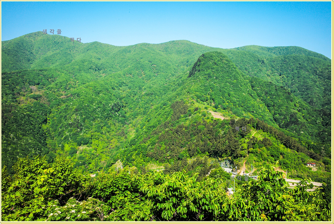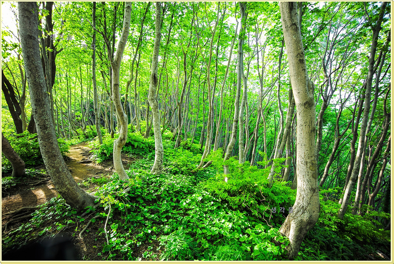그 산의 나무들은 대부분 활엽수라서 시기적으로 연두색과 녹색의 중간계열의 안정감있는 색감의 풍경을 연출하고 있었다.