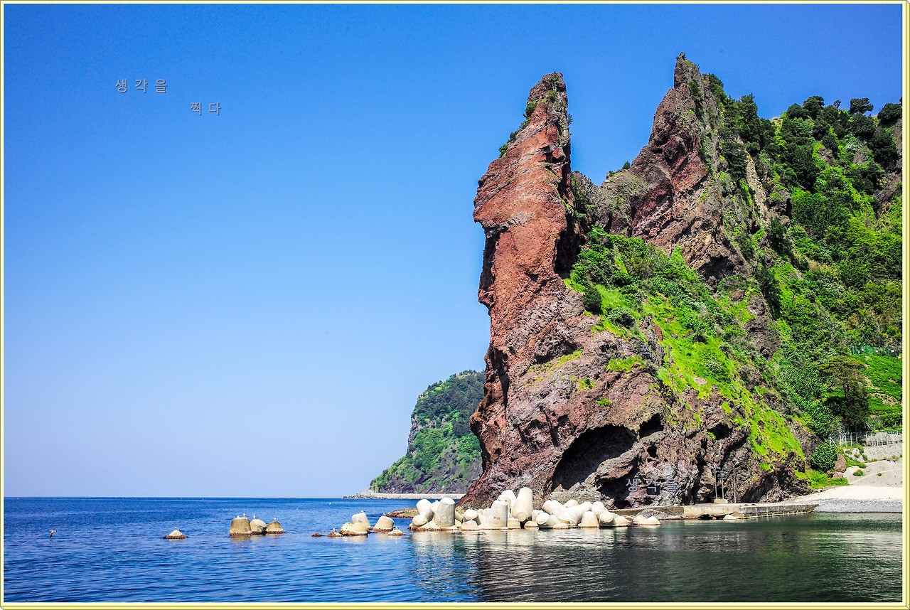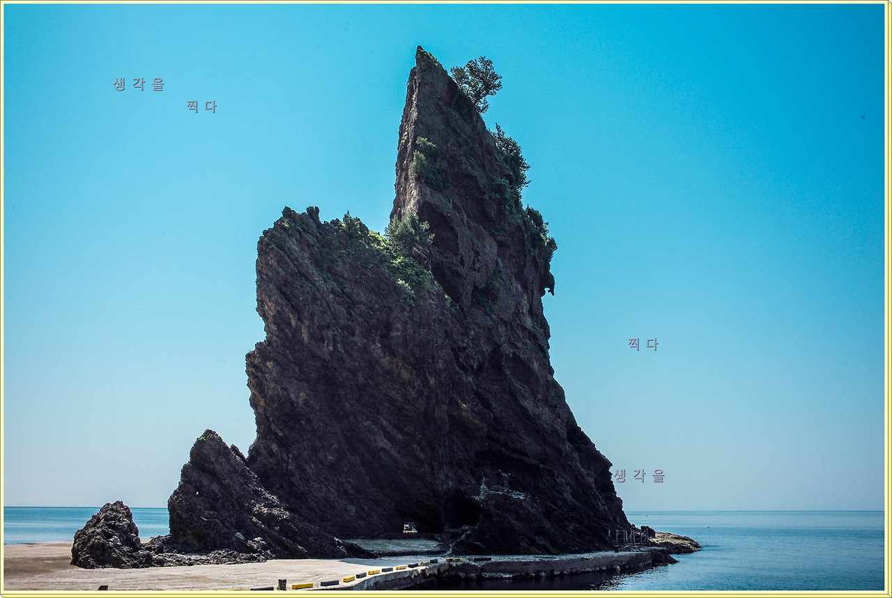 언뜻보면 하나의 바위섬으로 보이지만 세개의 바위섬이 겹쳐있다고 한다.