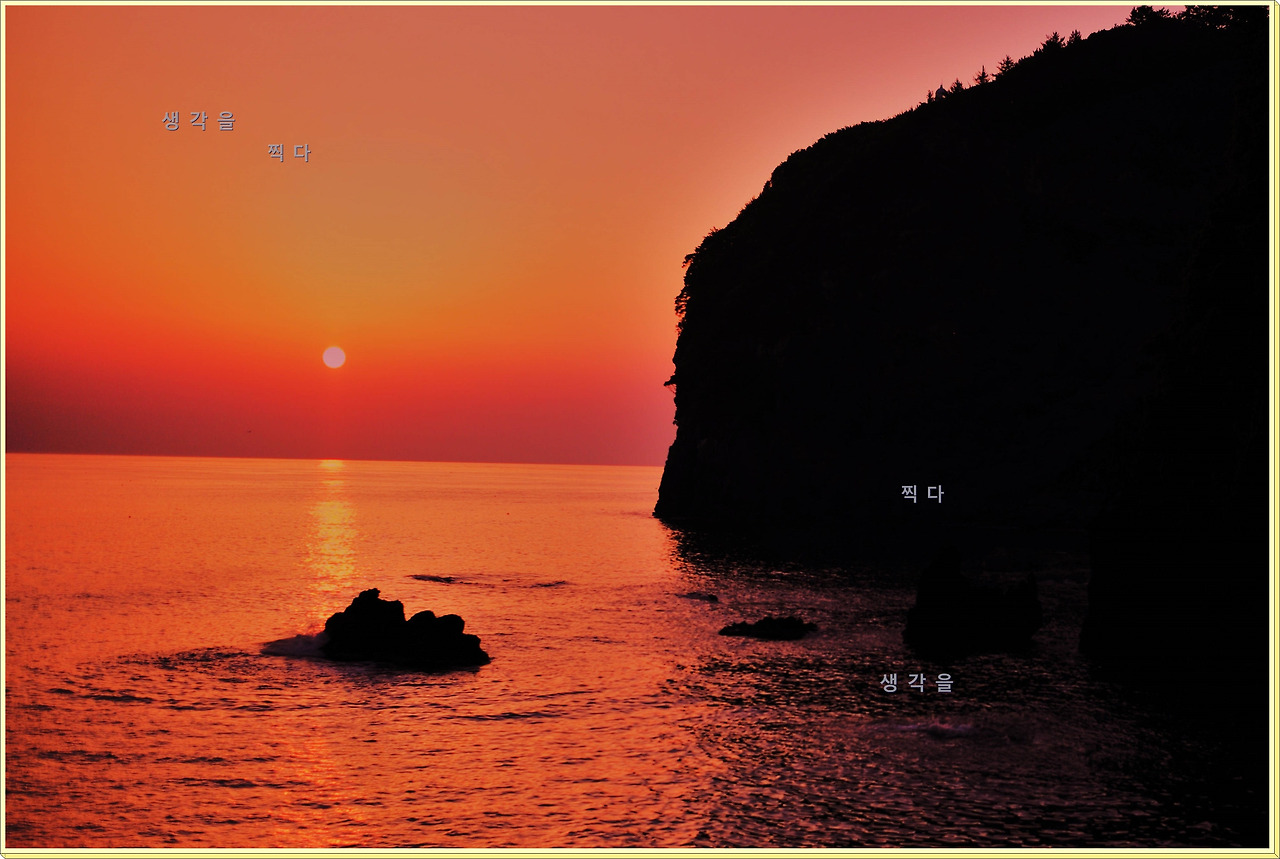 행남등대가 보이는 곳에 이르렀을때 울릉도의 붉은 해가 서서히 바다를 붉게 물들이고 있었다.