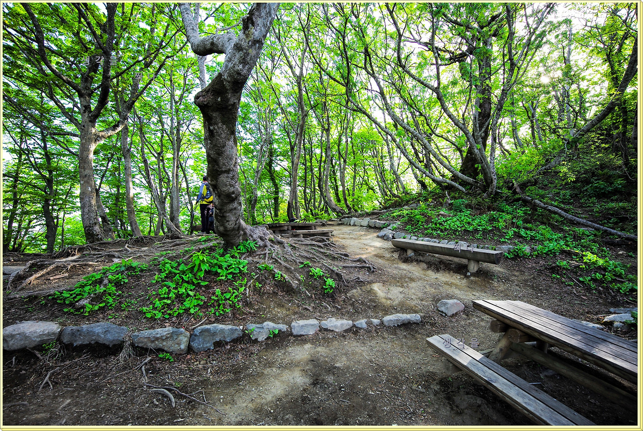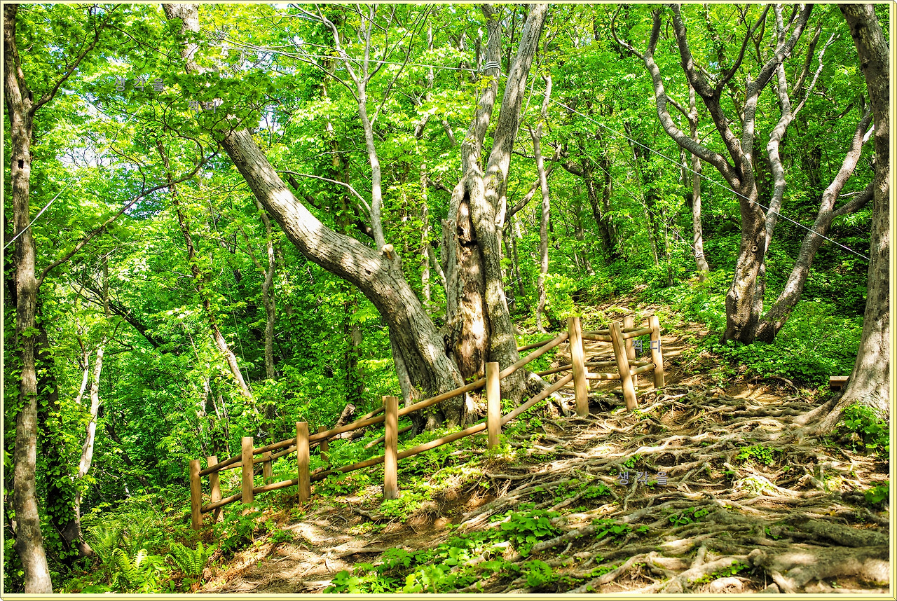 아름드리 고목이 오랜 생명력을 말해주고 있고 촘촘히 얽힌 뿌리가 원시림의 기원을 알려주는듯 한 능선길이다.