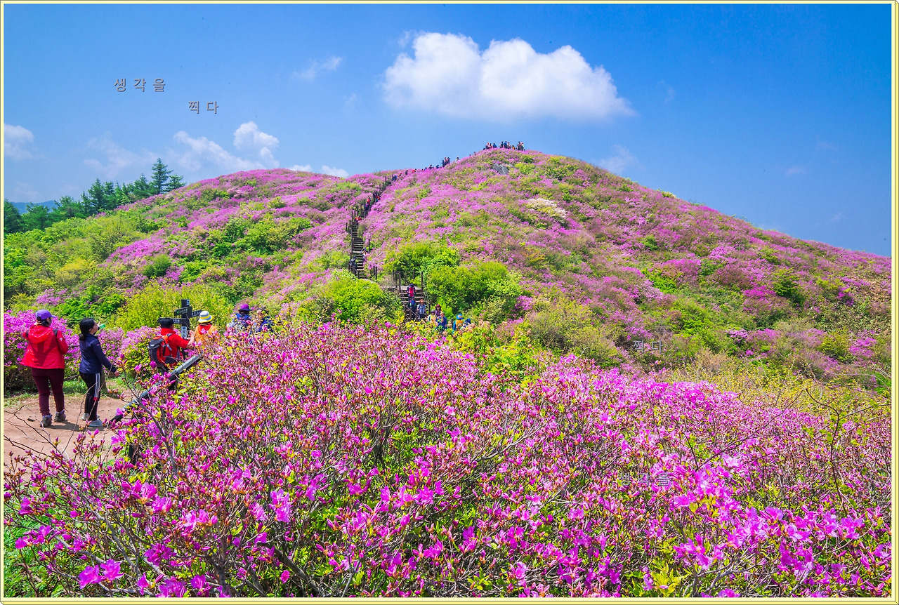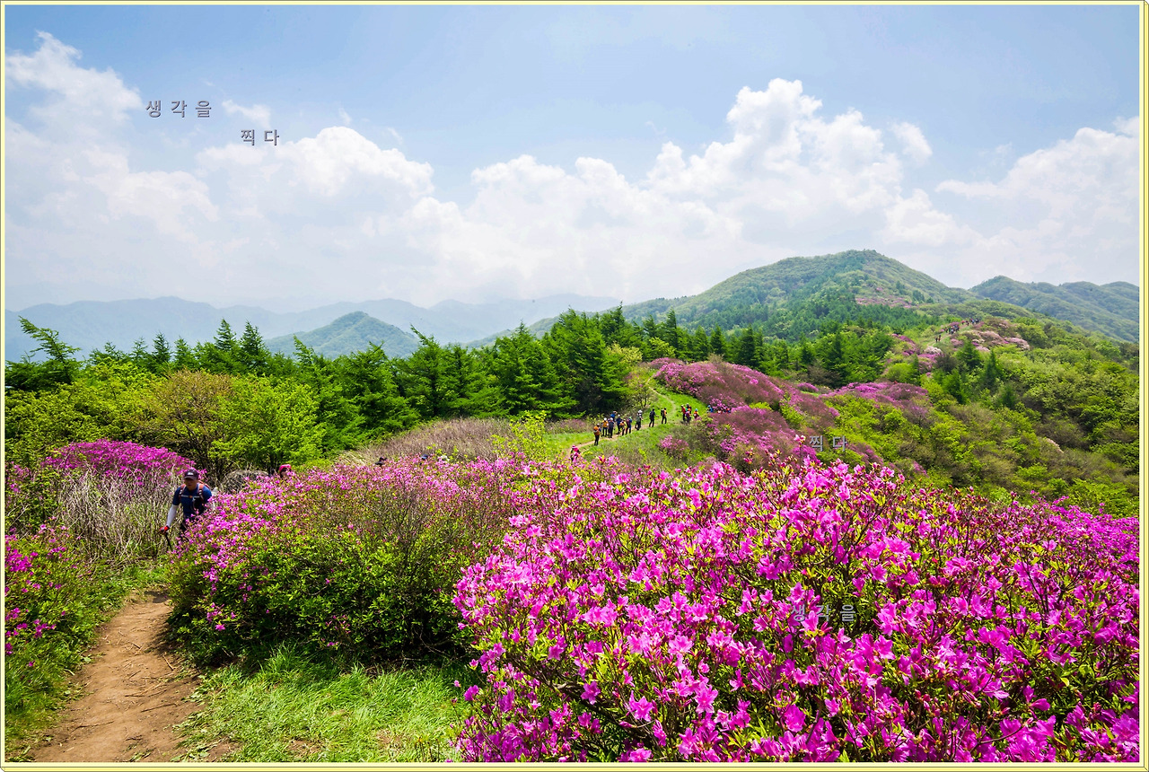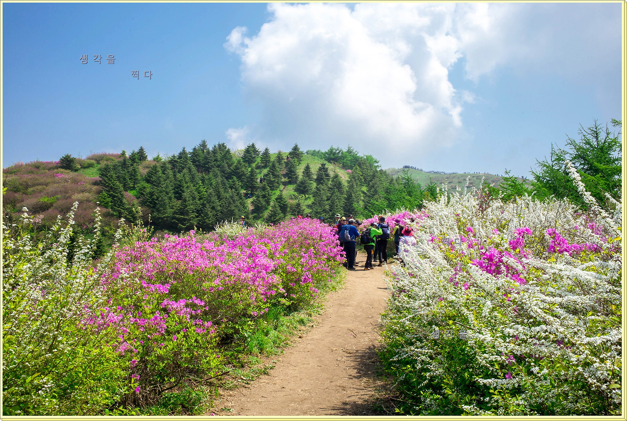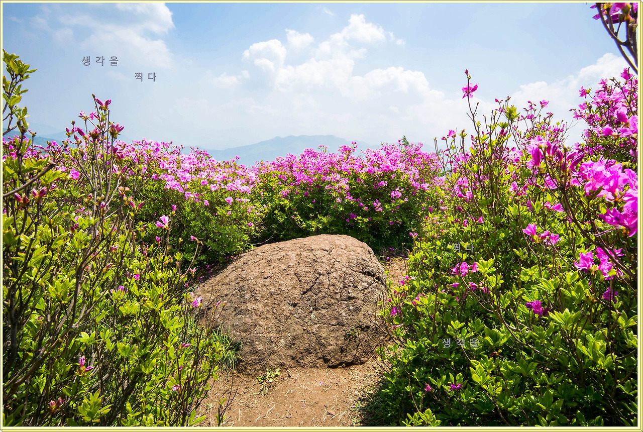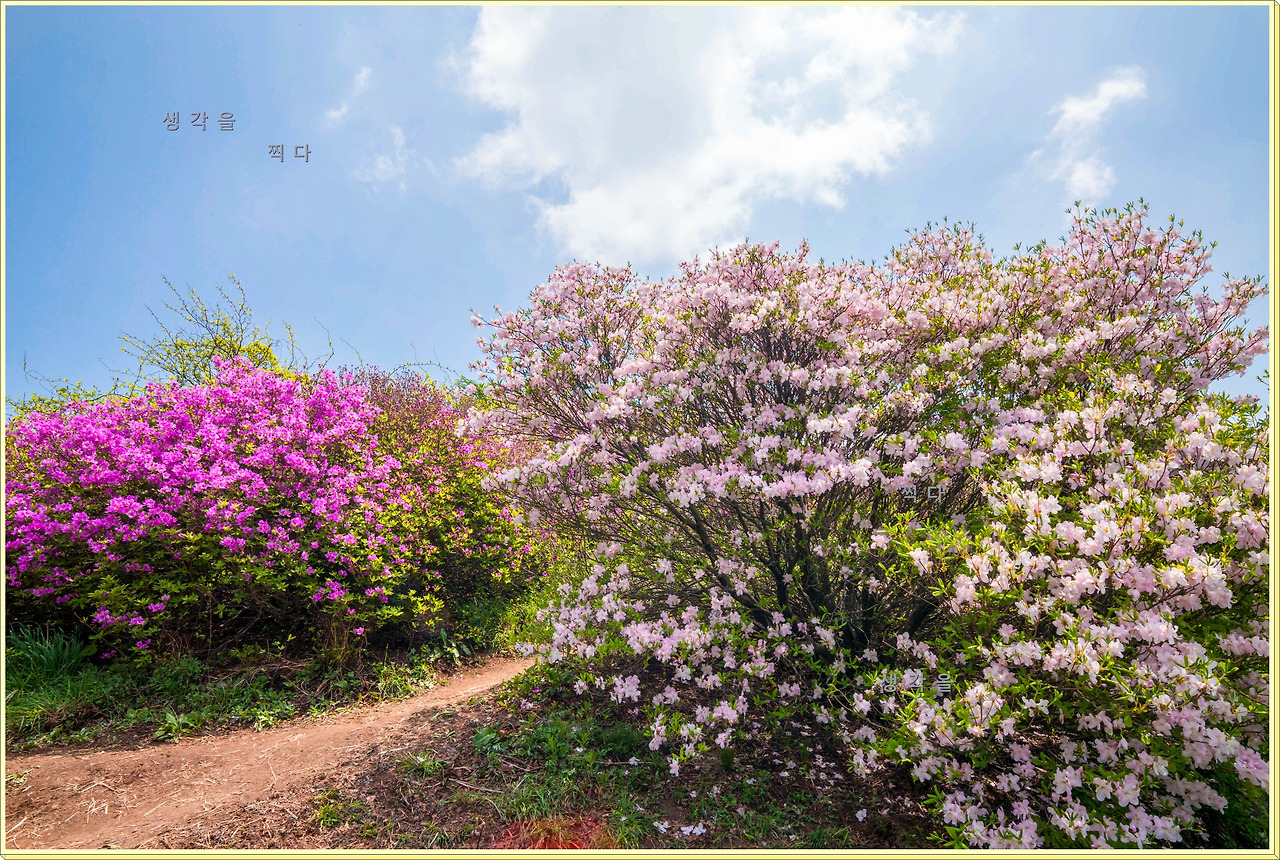 아직 만개상태는 아니고 80%정도의 개화 상태지만 뭉개뭉개 피어있는 철쭉과 하늘의 뭉개구름이 아름다운 조화를 이루고 있었다.