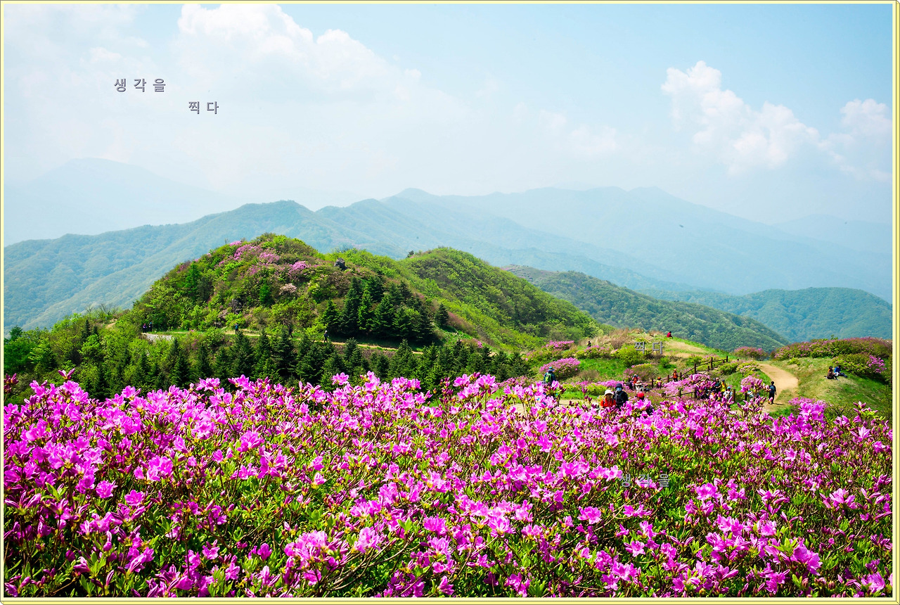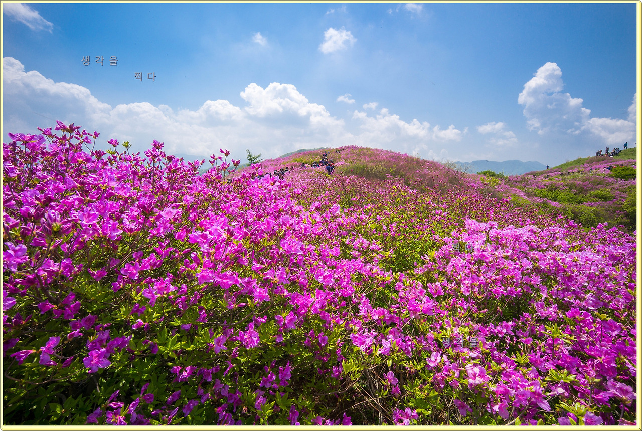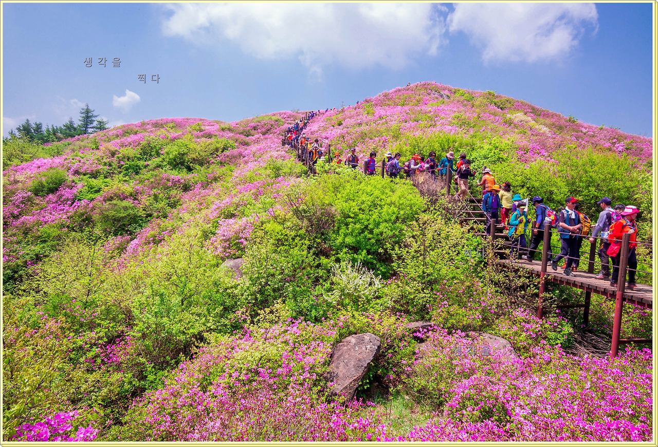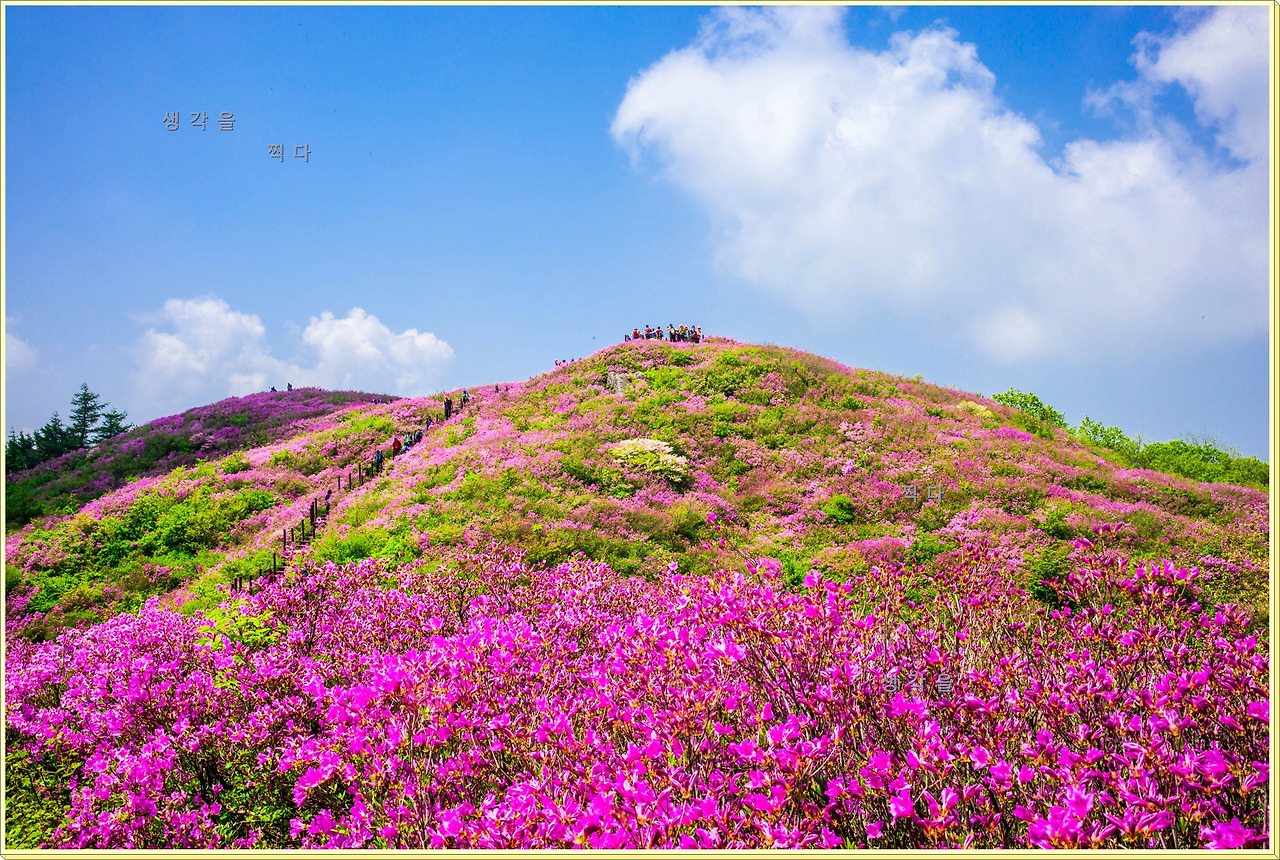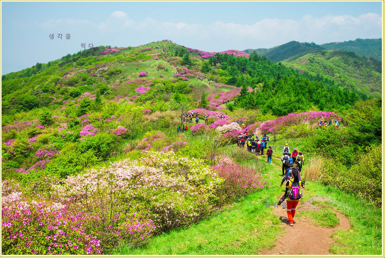 아직 만개상태는 아니고 80%정도의 개화 상태지만 뭉개뭉개 피어있는 철쭉과 하늘의 뭉개구름이 아름다운 조화를 이루고 있었다.