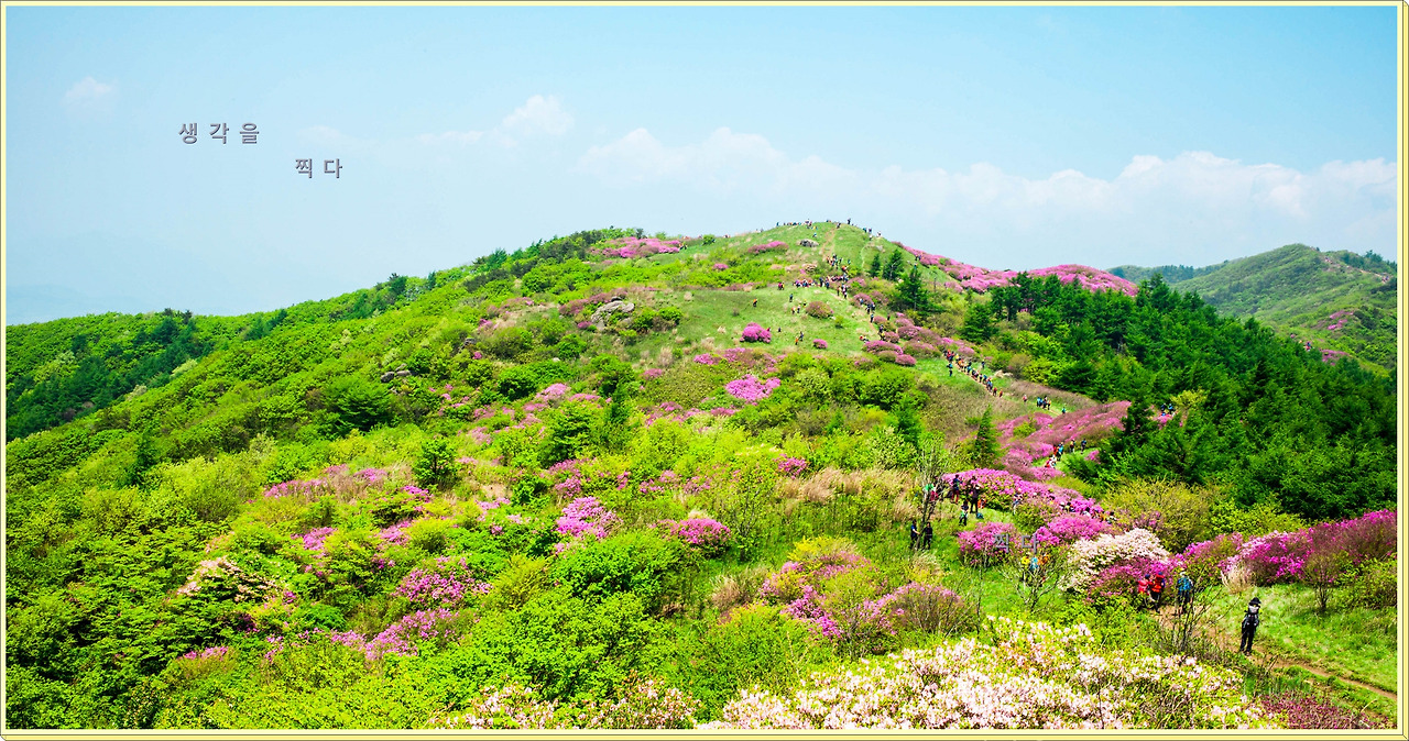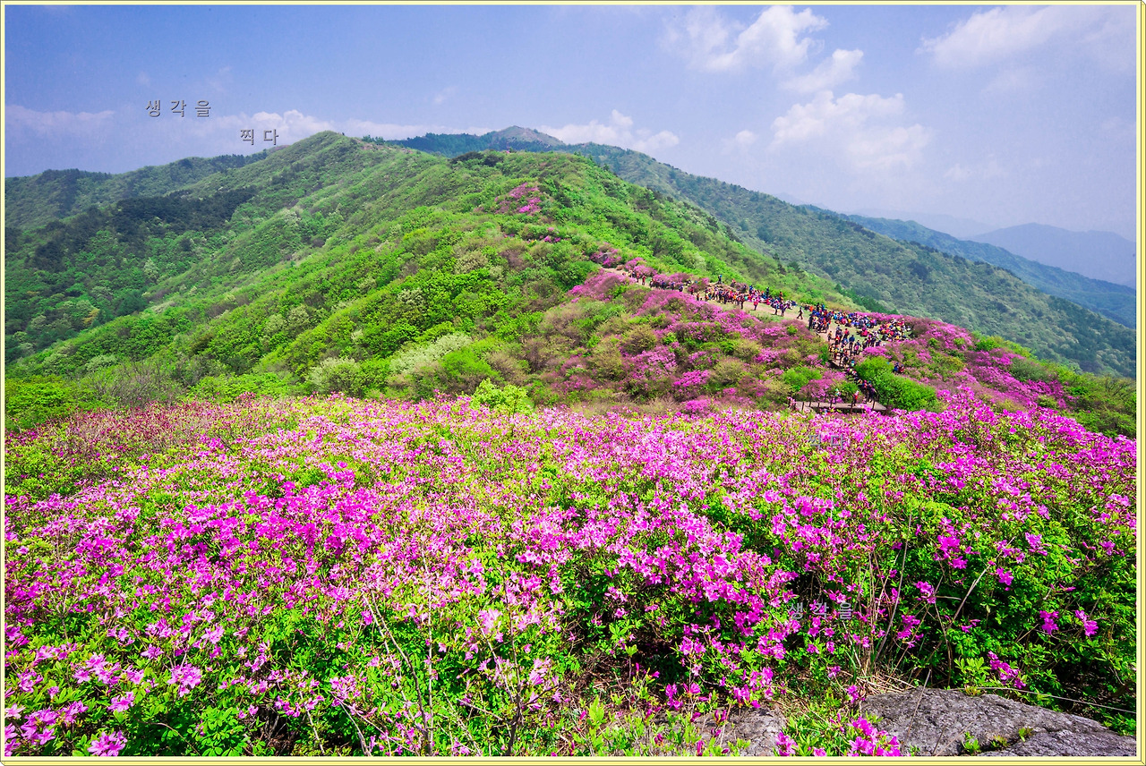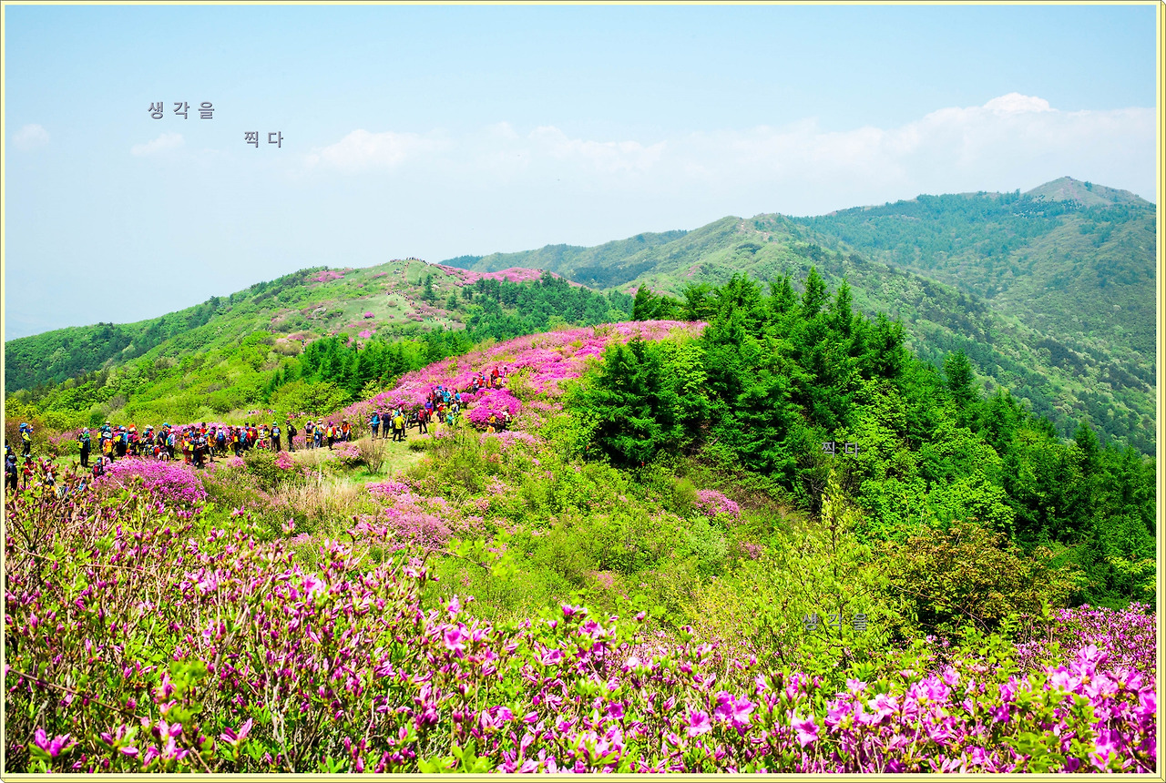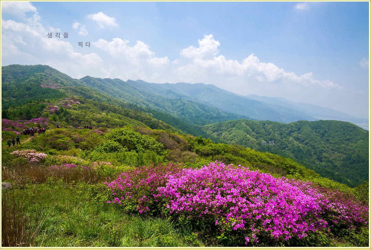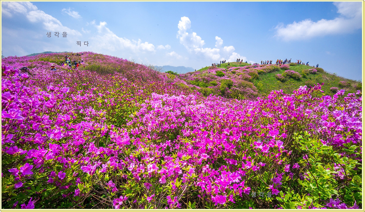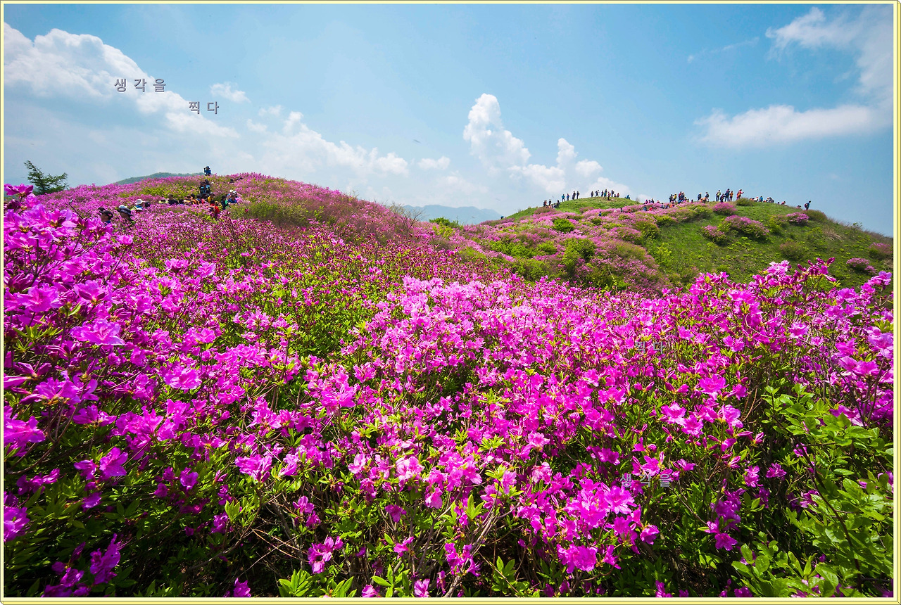 아직 만개상태는 아니고 80%정도의 개화 상태지만 뭉개뭉개 피어있는 철쭉과 하늘의 뭉개구름이 아름다운 조화를 이루고 있었다.