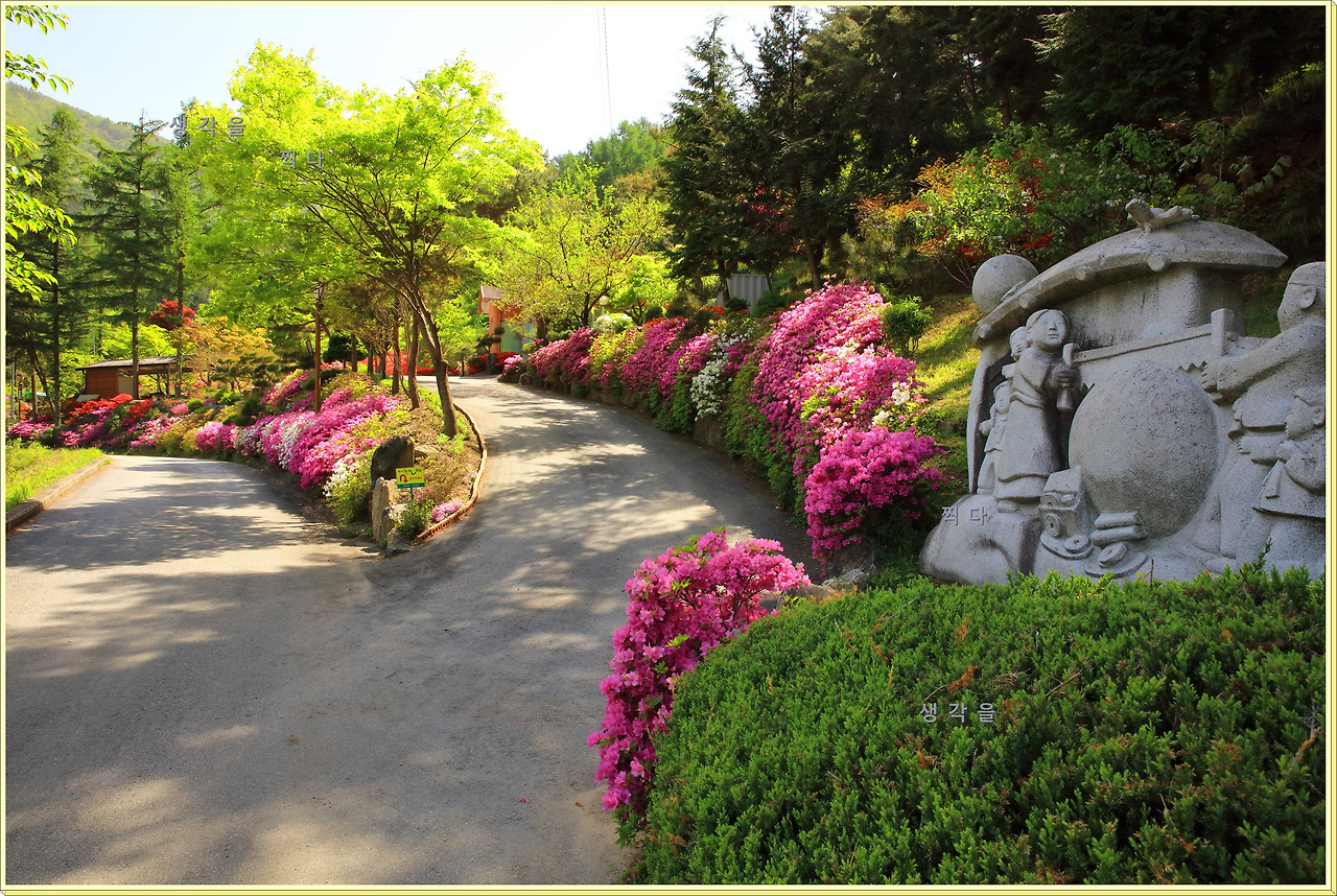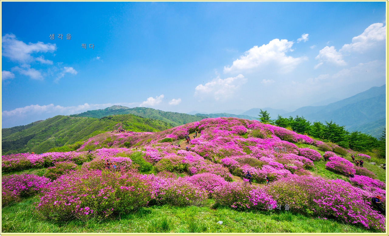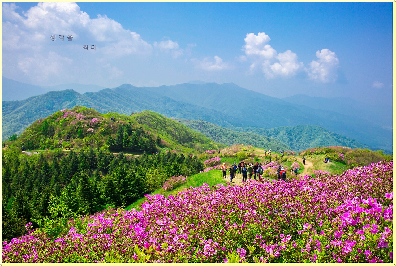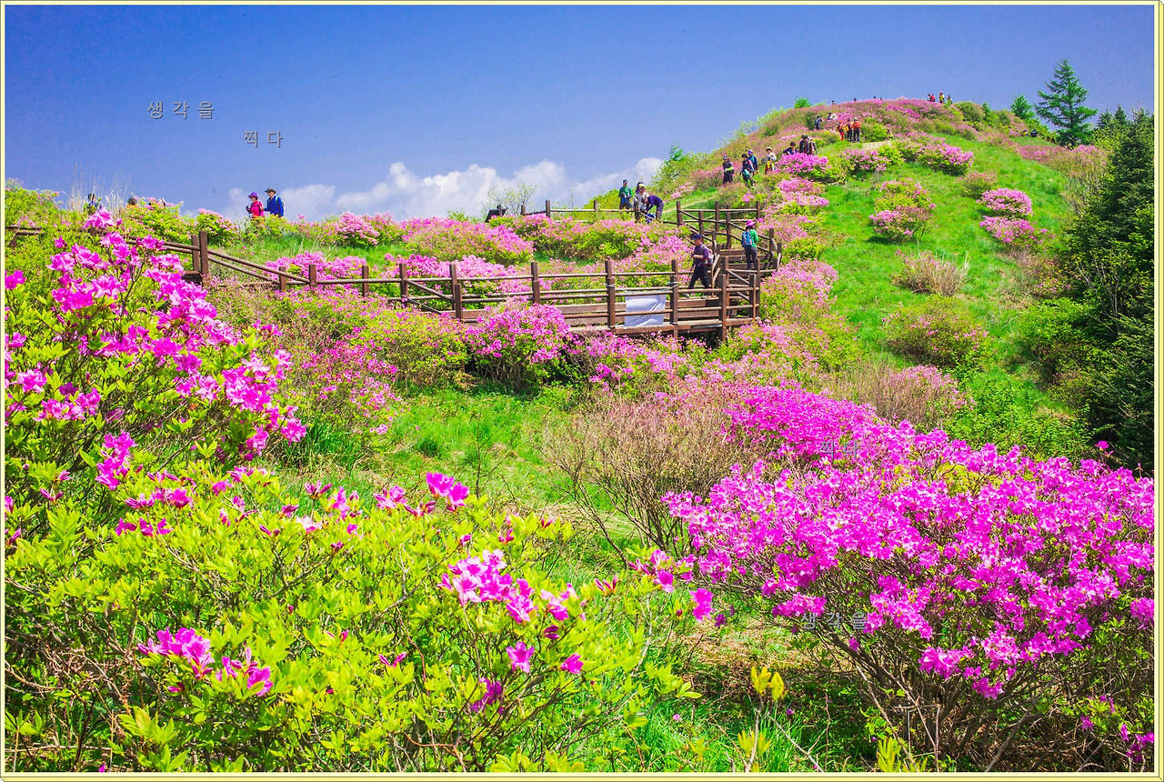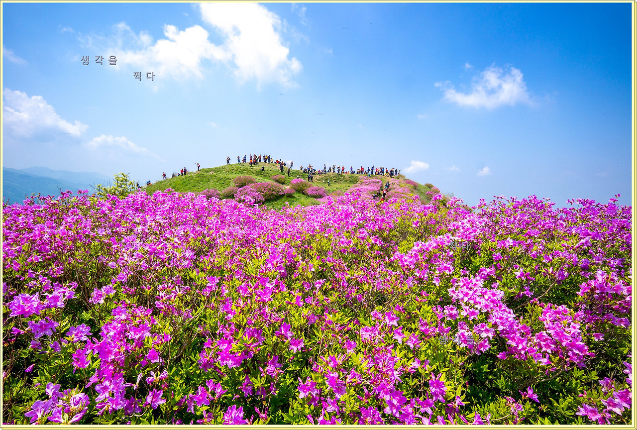 아직 만개상태는 아니고 80%정도의 개화 상태지만 뭉개뭉개 피어있는 철쭉과 하늘의 뭉개구름이 아름다운 조화를 이루고 있었다.