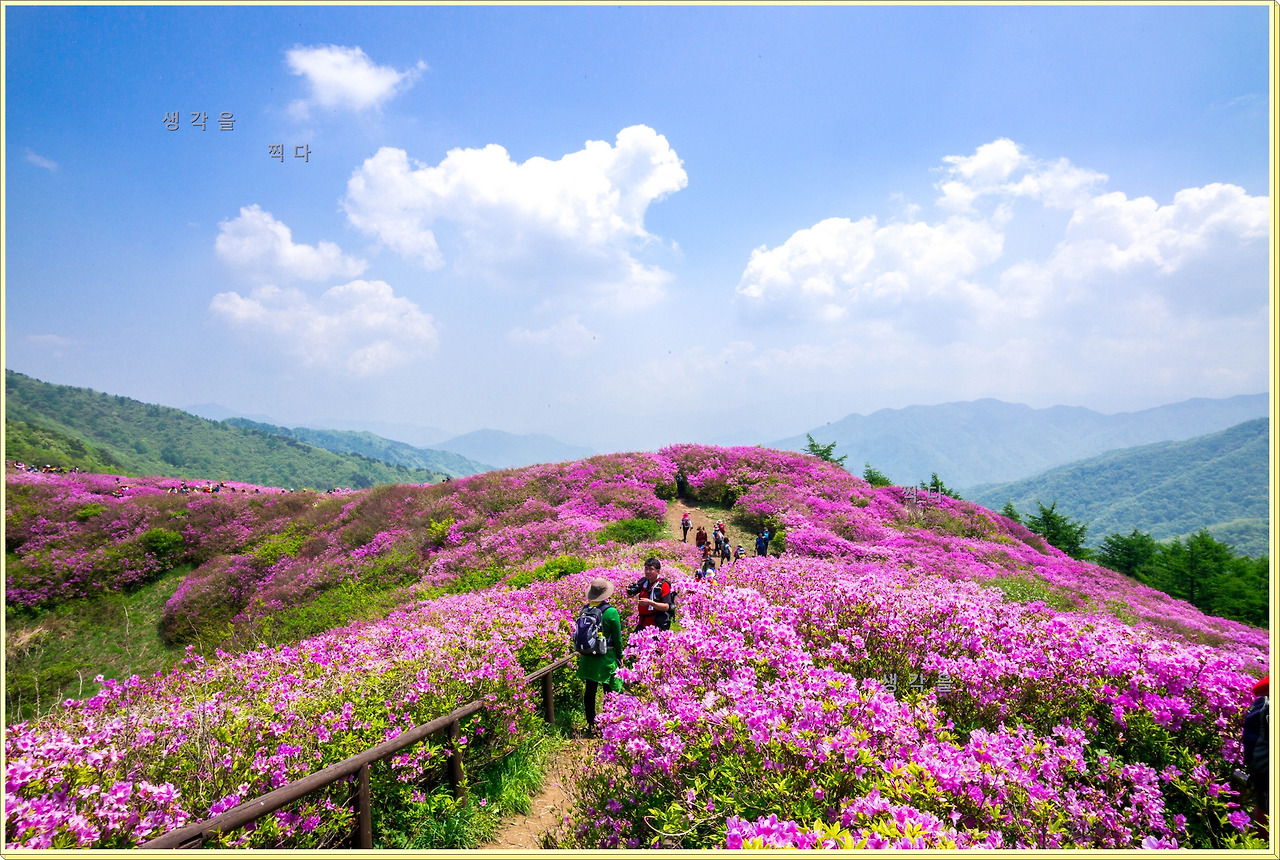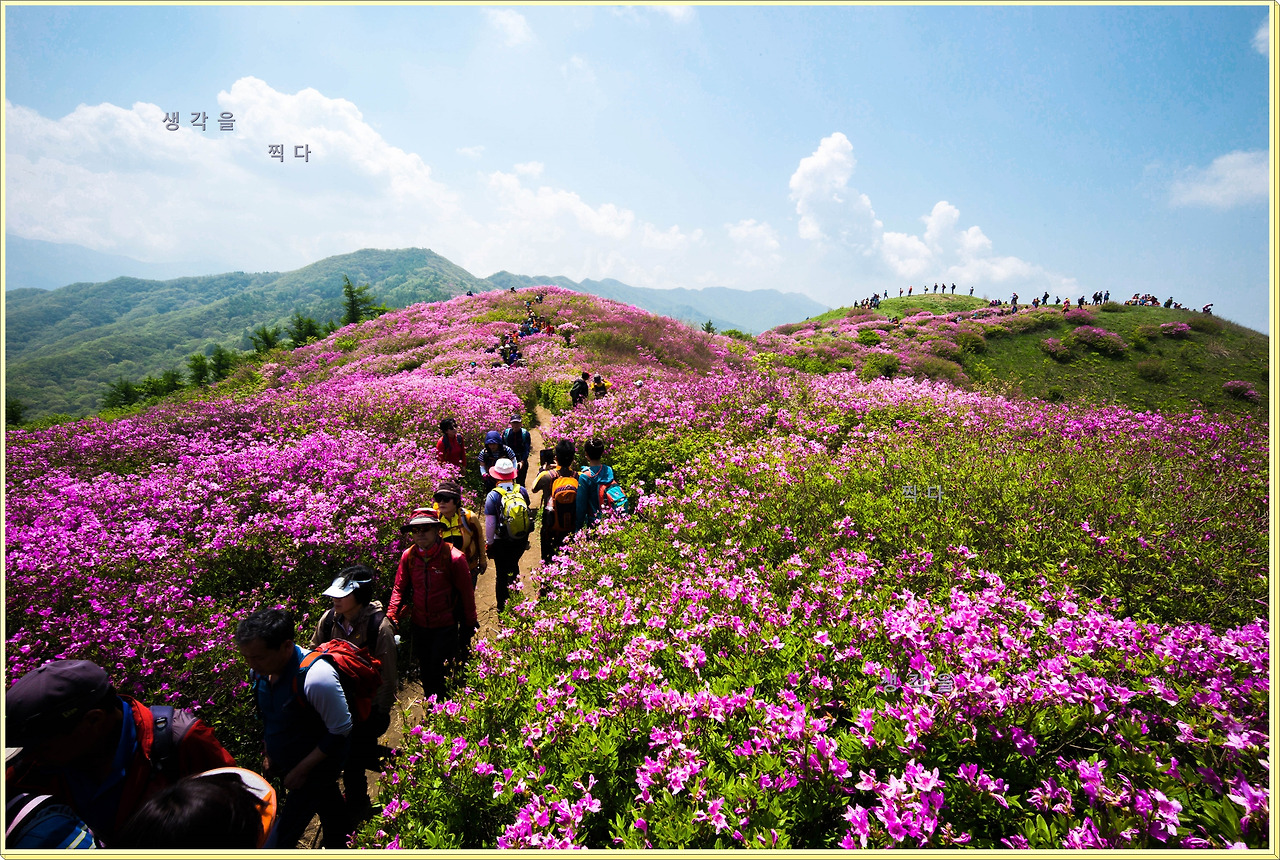 능선길 주위에 꽃구름처럼 뭉개뭉개 피어있는 모습은 가까이서 보다 멀리 내려다보거나 올려다 보는 모습이 훨씬 아름답다.