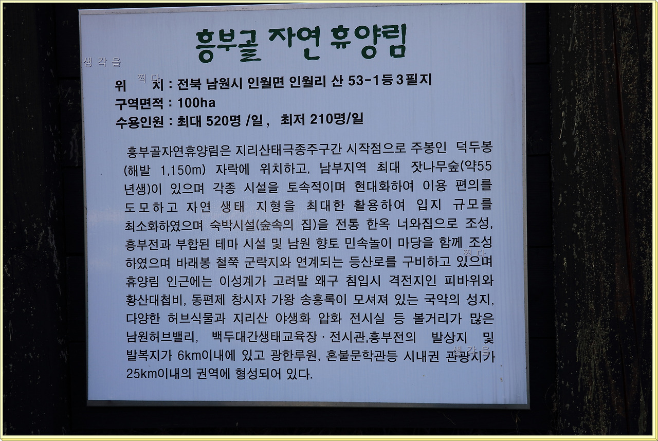 흥부골 휴양림이라는데 규모도 크고 괜찮은 곳 같은데도 이용자가 없다.