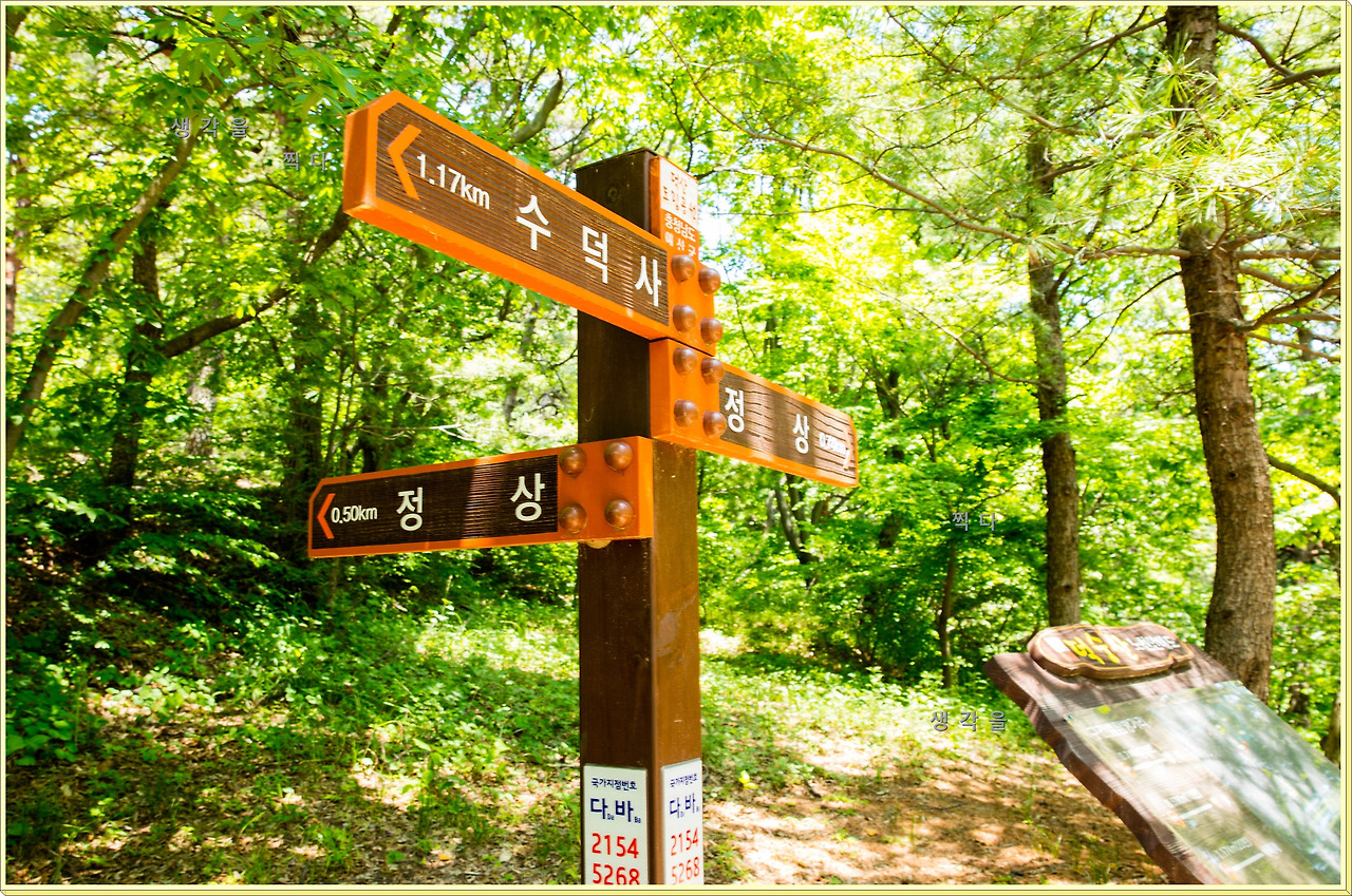 수덕사에서 정상까지는 1.6km남짓인데 그나마도 구경거리가 많아서 거의 산행 기분을 느낄 겨를이 없다.