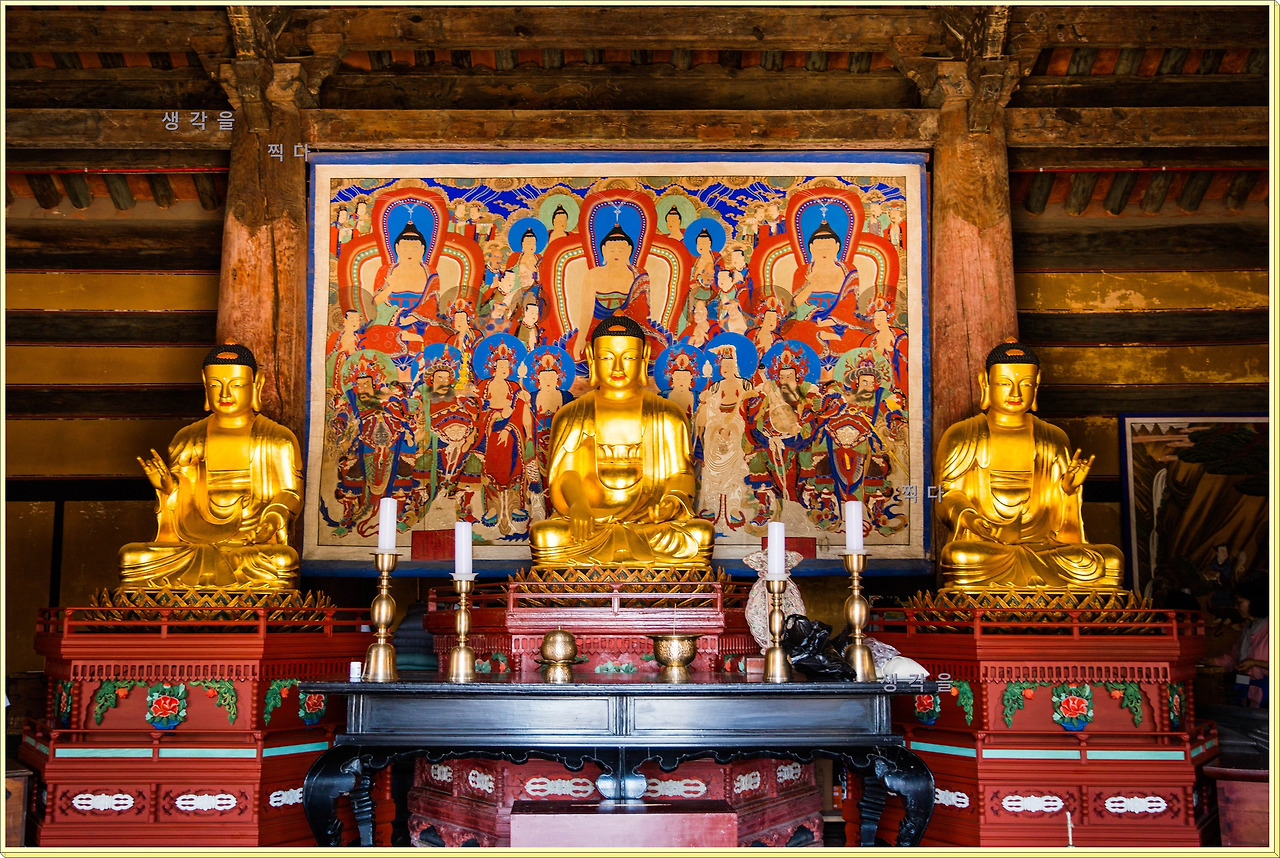 또한 대웅전 안에는 중앙의 석가모니불을 중심으로 약사불, 아미타불의 삼세불이 모셔져 있다.