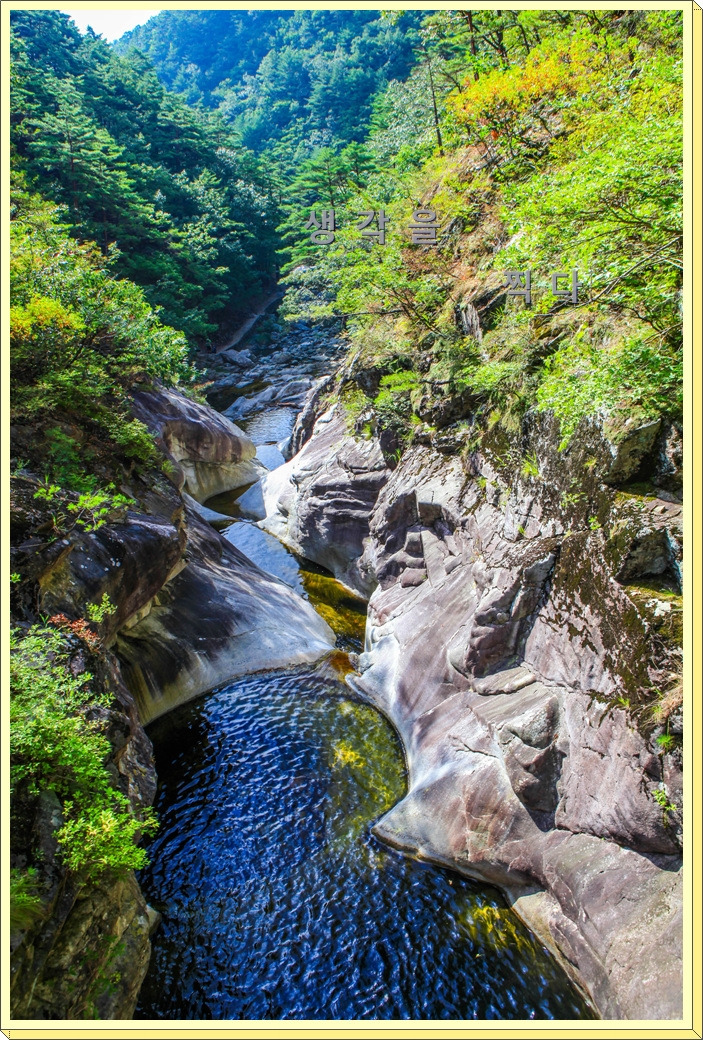 그 암반이 수만년 물줄기에 닳고 닳아서 소(沼)가 되고 폭포가 되고 천연의 물길이 되었다.