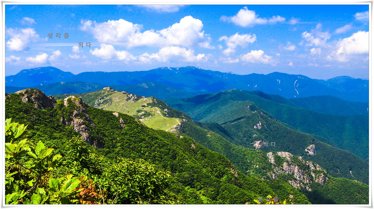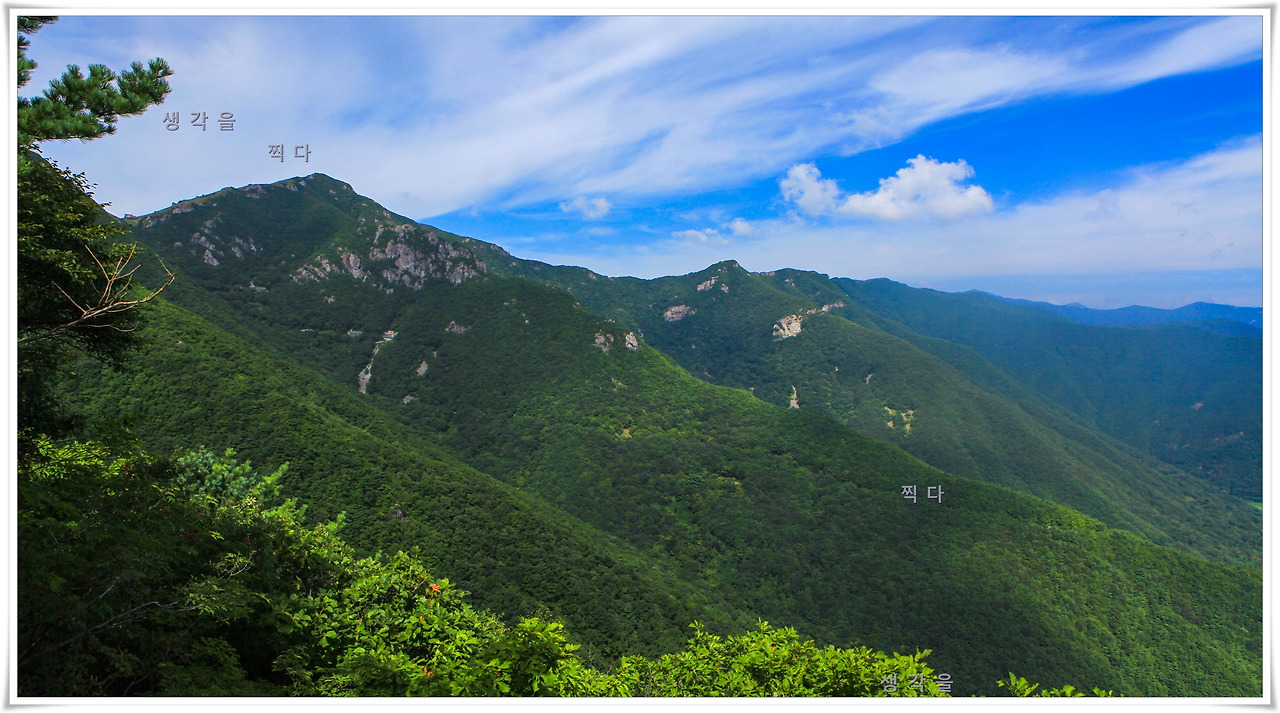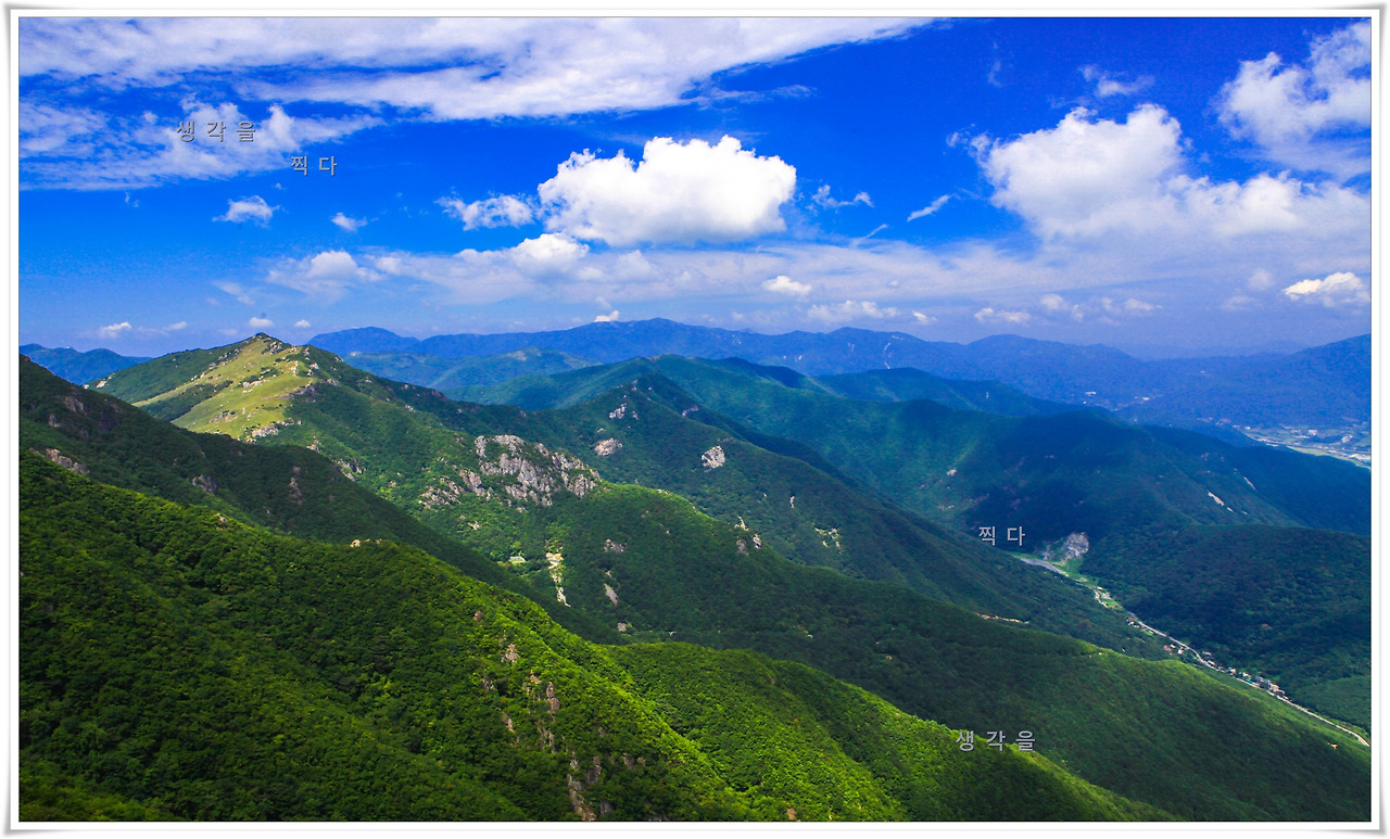 맨 뒤쪽 능선이 지난번에 종주산행을 했던 가지산과 운문산 능선이다.