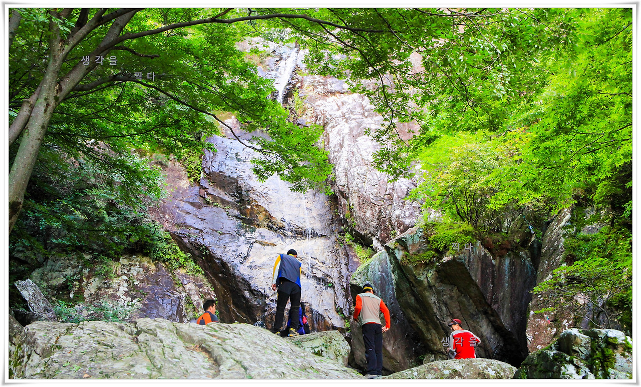 그 가파르고 거친 산길을 15분쯤 오르다보면 나오는 홍류폭포다.