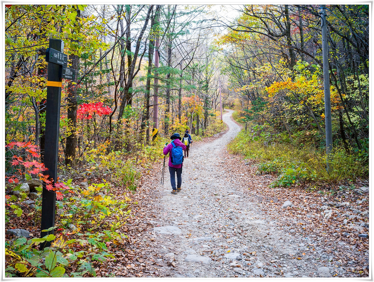이제 중대사자암을 지나 단풍이 절정을 이룬 호젓한 산 길을 다시 걷는다.