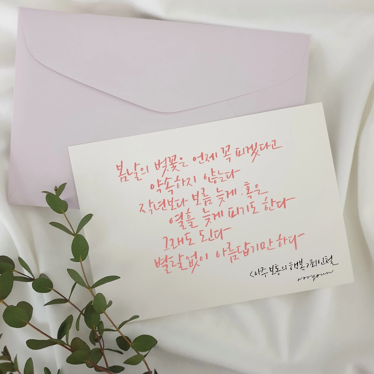 일상의 예술을 살고 싶어서 캘리그라피를 하며 출퇴근 짬짬히 글을 씁니다.