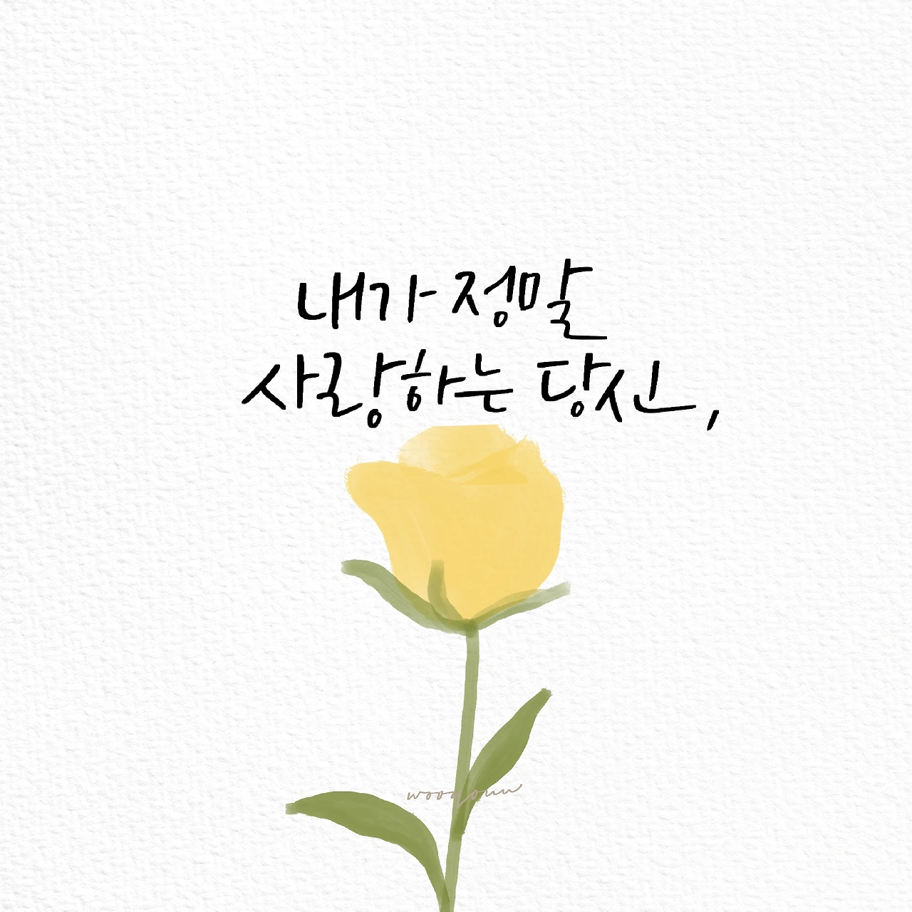 그런 경우는 변형을 안 주고 무난하게 쓰시면 되고요. '내가 정말 사랑하는 당신' 이렇게 마지막 글자가 될 경우 'ㄴ'받침을 쭉 가로길이 변형을 주어 포인트를 줄 수 있습니다.