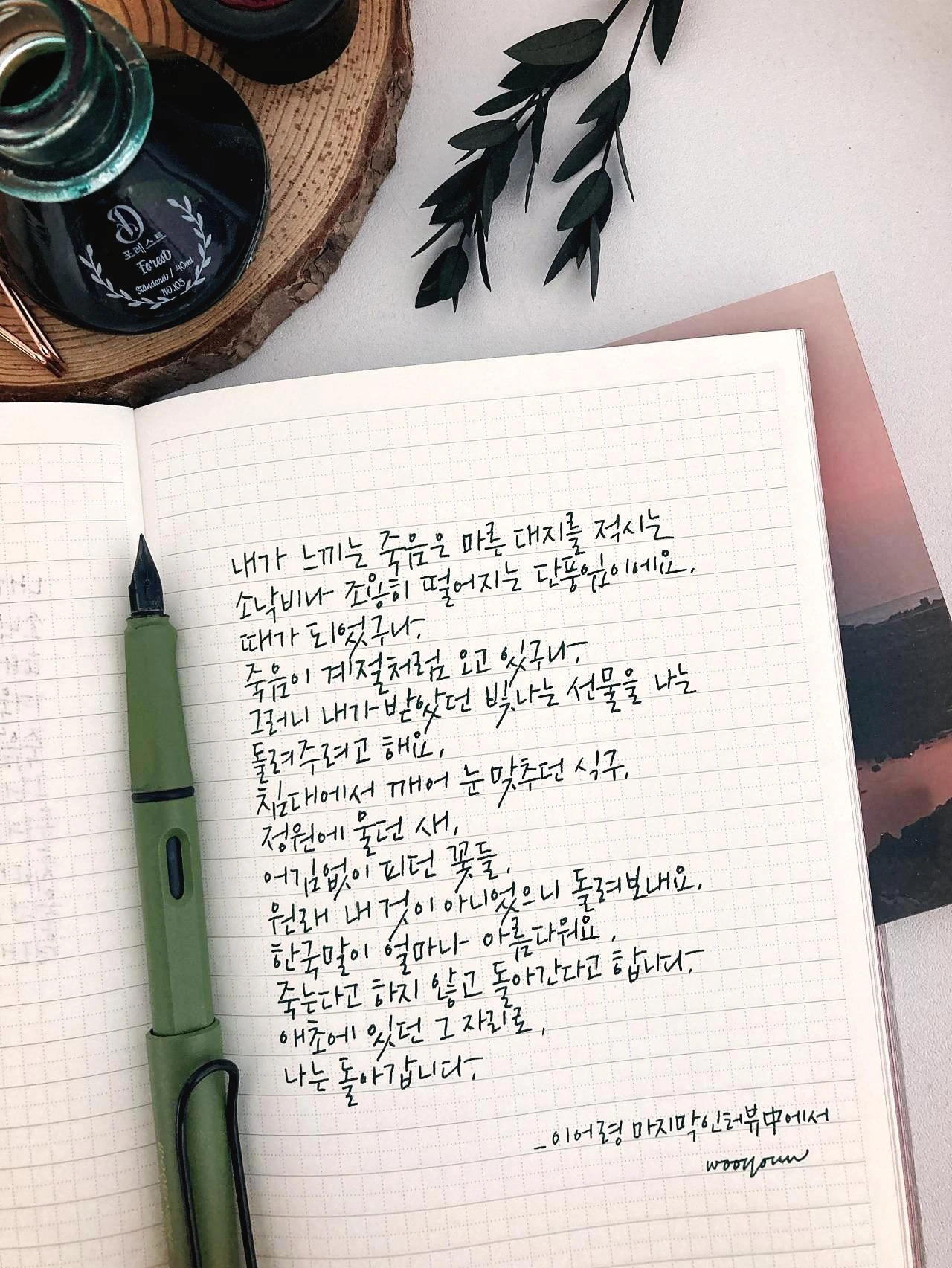 좋은 문장을 손글씨로 옮기면 머리로 읽기도 하지만 손으로 한 번 더 읽게 됩니다.