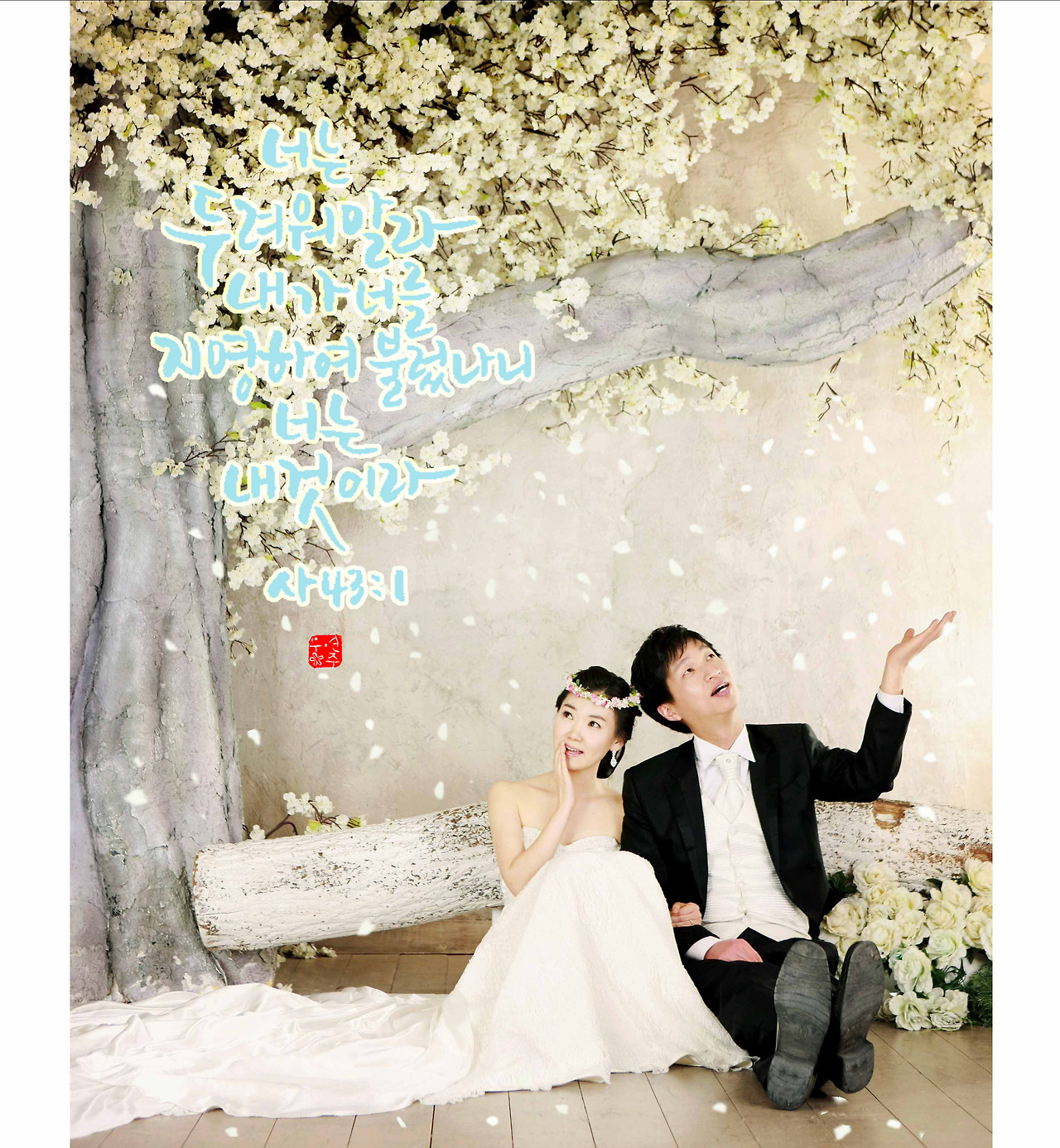 친구가 결혼사진에 성경구절을 넣어달라고 보내왔다.