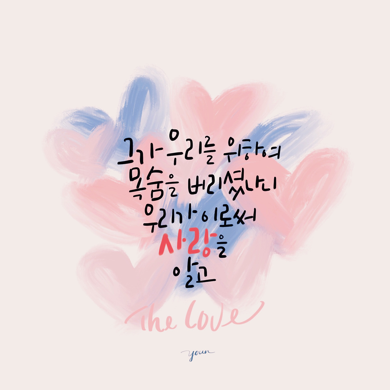 그가 우리를 위하여 목숨을 버리셨으니 우리가 이로써 사랑을 알고 우리도 형제들을 위하여 목숨을 버리는 것이 마땅하니라
