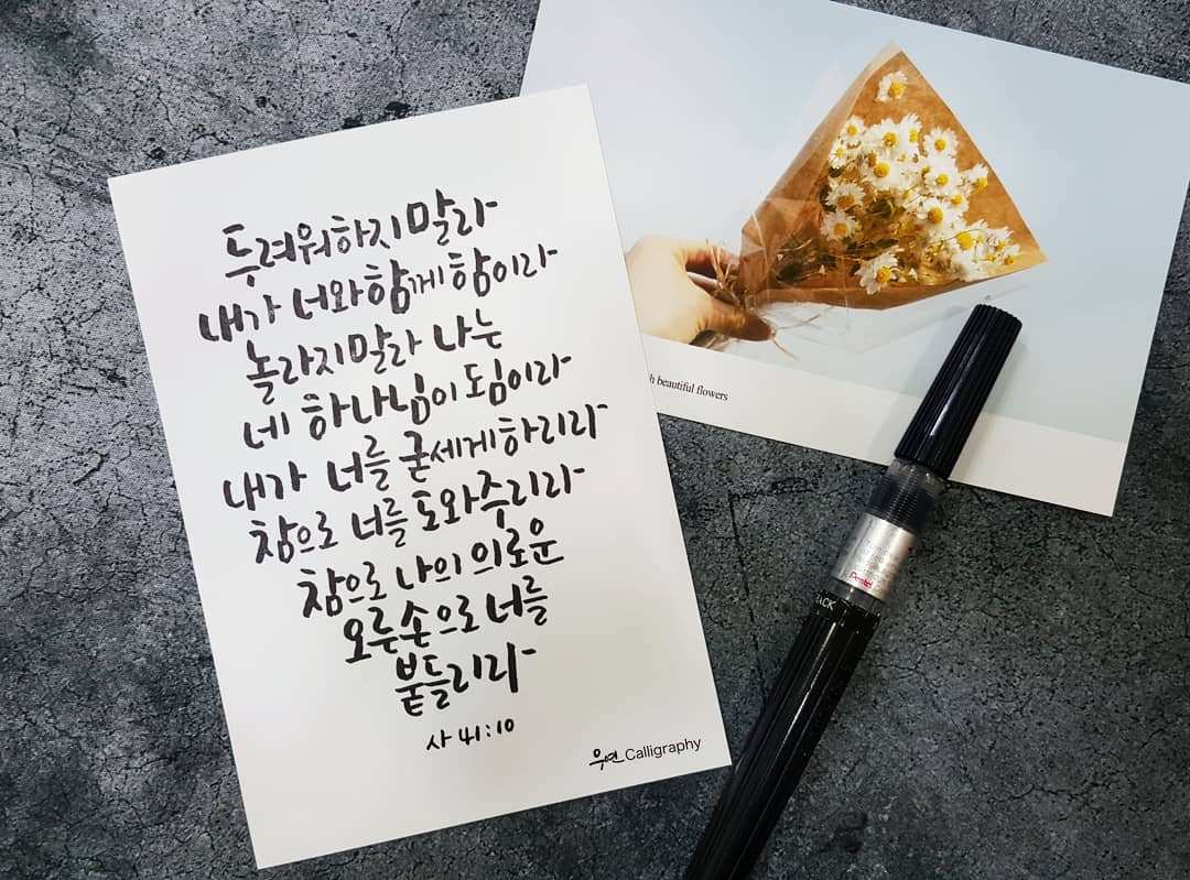 두려워 하지 말라 내가 너와 함께 함이라 놀라지 말라 나는 네 하나님이 됨이라 내가 너를 굳세게 하리라 참으로 너를 도와 주리라 참으로 나의 의로운 오른손으로 너를 붙들리라