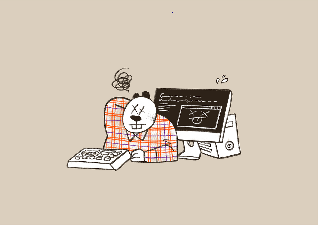 그래서 비버의 모습을 더 구체적으로 만들어보기로 했다. 우리 서비스의 타겟층인 개발자들을 그대로 형상화한 비버로 말이다. 마치 카툰 캐릭터처럼, 구체적인 표정과 몸짓을 가진 친구로 상상했다. 유저 입장에서도 이 편이 더 나을 거라 생각했다. 한 눈에 설명되고, 호소력도 갖춘 친구가 되어야 할 것 같았다. Obig, Jean Jullien, Super Fiction 등등 사랑받고 있는 일러스트레이터의 작품을 레퍼런스 삼아 이것저것 그리기 시작했다.