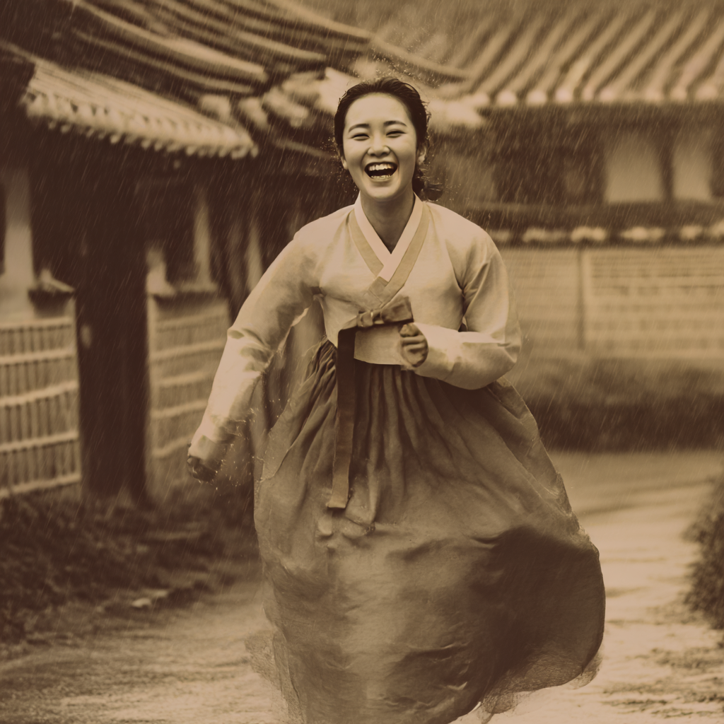 그러다가 갑자기 쏟아지는 소나리를 맞고 옷이 젖어서 후줄근해진 채로 달아나는데, 그런데도 색시들은 즐거워 한다. 이제 곧 친정집에 갈 일이며, 칠월 그믐 초가을을 할 때까지 친정 집에서 쉴 것을 생각하면서 즐겁다. 그래서 옷이 젖었어도 상관하지 않고 오히려 시원하다고 하면서 즐거워 하는 모습이다.