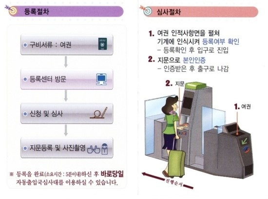 발권 및 수화물 위탁이 끝났으면 출입국관리소로 가야 하는데 자동출입국심사를 등록하지 않았다면 F카운트 끝 등록센터로 가서 위와 같이 등록하자.