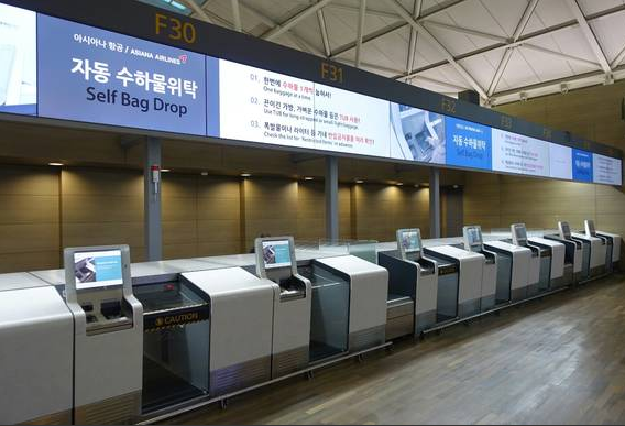인천공항은 지난해 자동발권기 12대와 자동 수하물 기기 10대를 갖춘 셀프서비스존을 공항 내 여객터미널 F 카운터에 설치해 두고 있다.