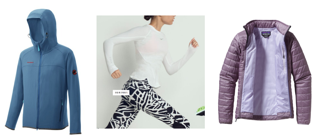 기능성 얇은 져지 또는 바람막이 역시 자주 입게 됩니다.