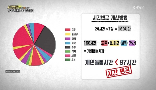시간 압박에 시달리고 시간에 쫓기는 사람을 일컬어 부르는 신조어로 1주일 단위로 168시간 중 근무, 보육, 가사, 출퇴근 시간을 빼서 남는 시간을 개인 돌봄 시간이라고 한다.