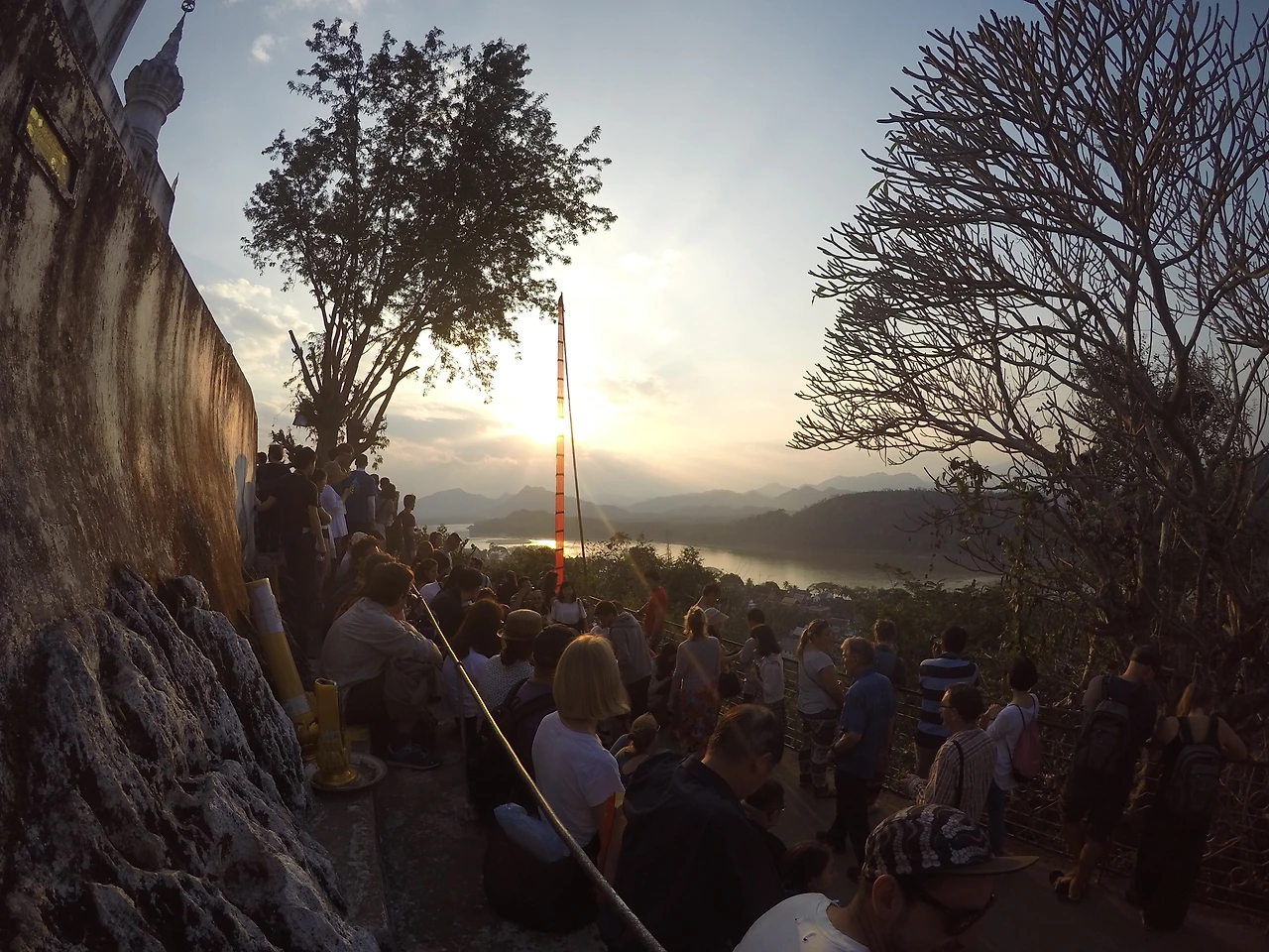 메콩강에 석양이 내리면 우린 푸시(Phou Si) 산을 올라간다.