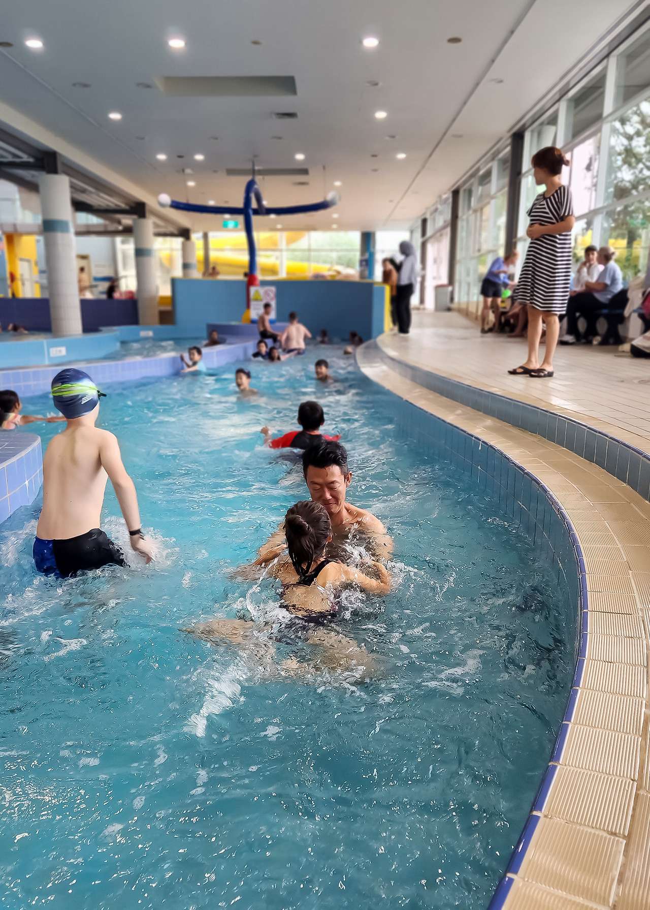 게다가 수영을 하지 않고 구경만 하는 보호자들도 탈의하지 않고 일상복 차림으로 신발을 신은채 수영장에 들어갈 수 있는 것 또한 놀라웠다.