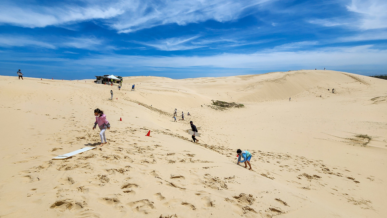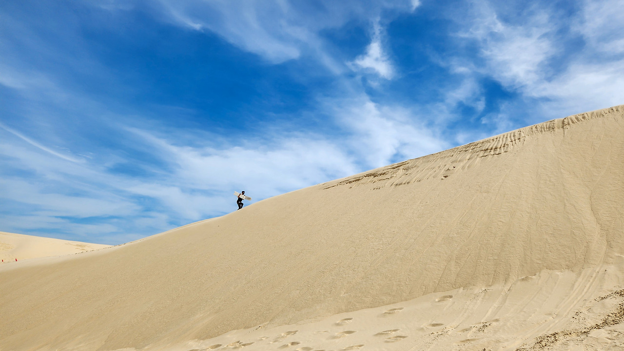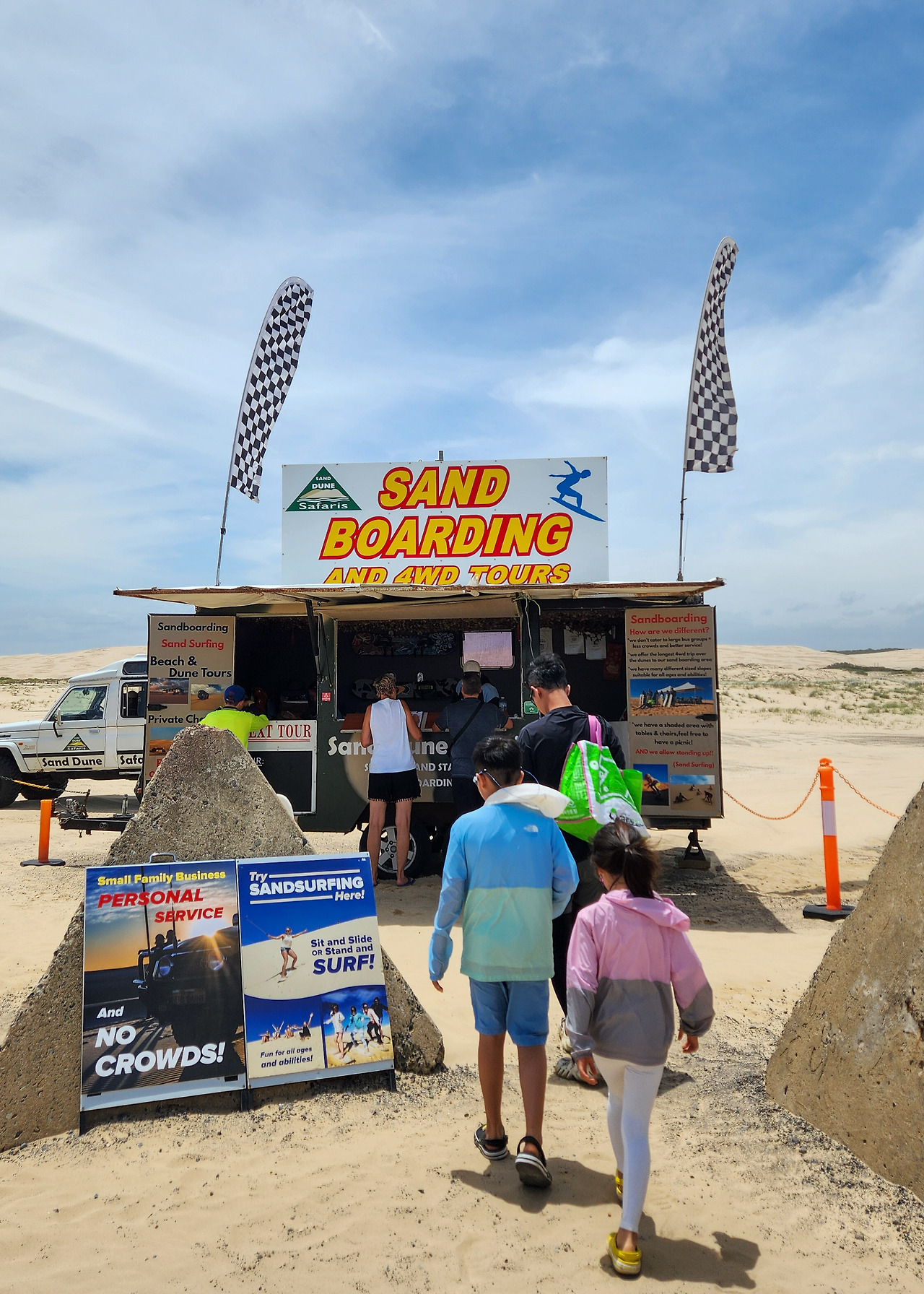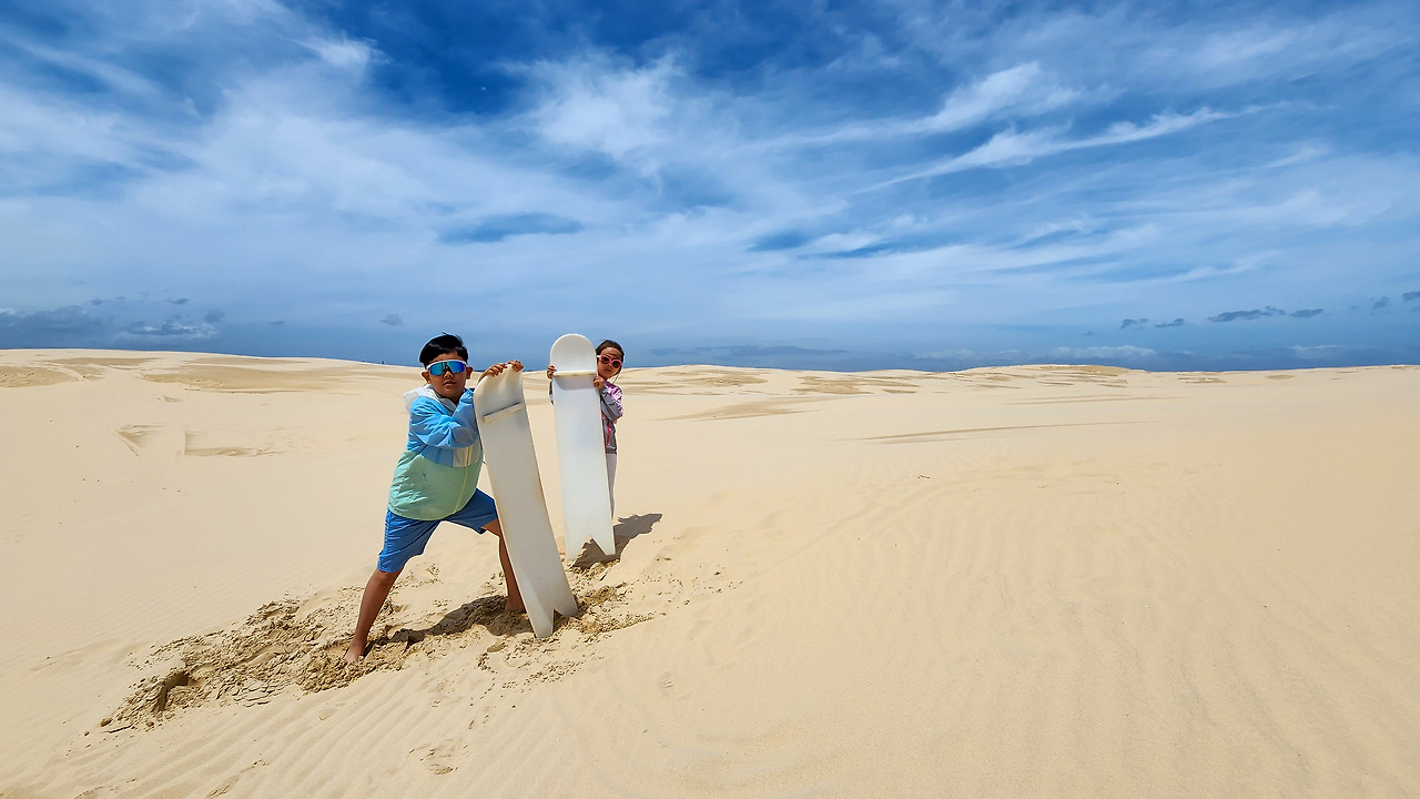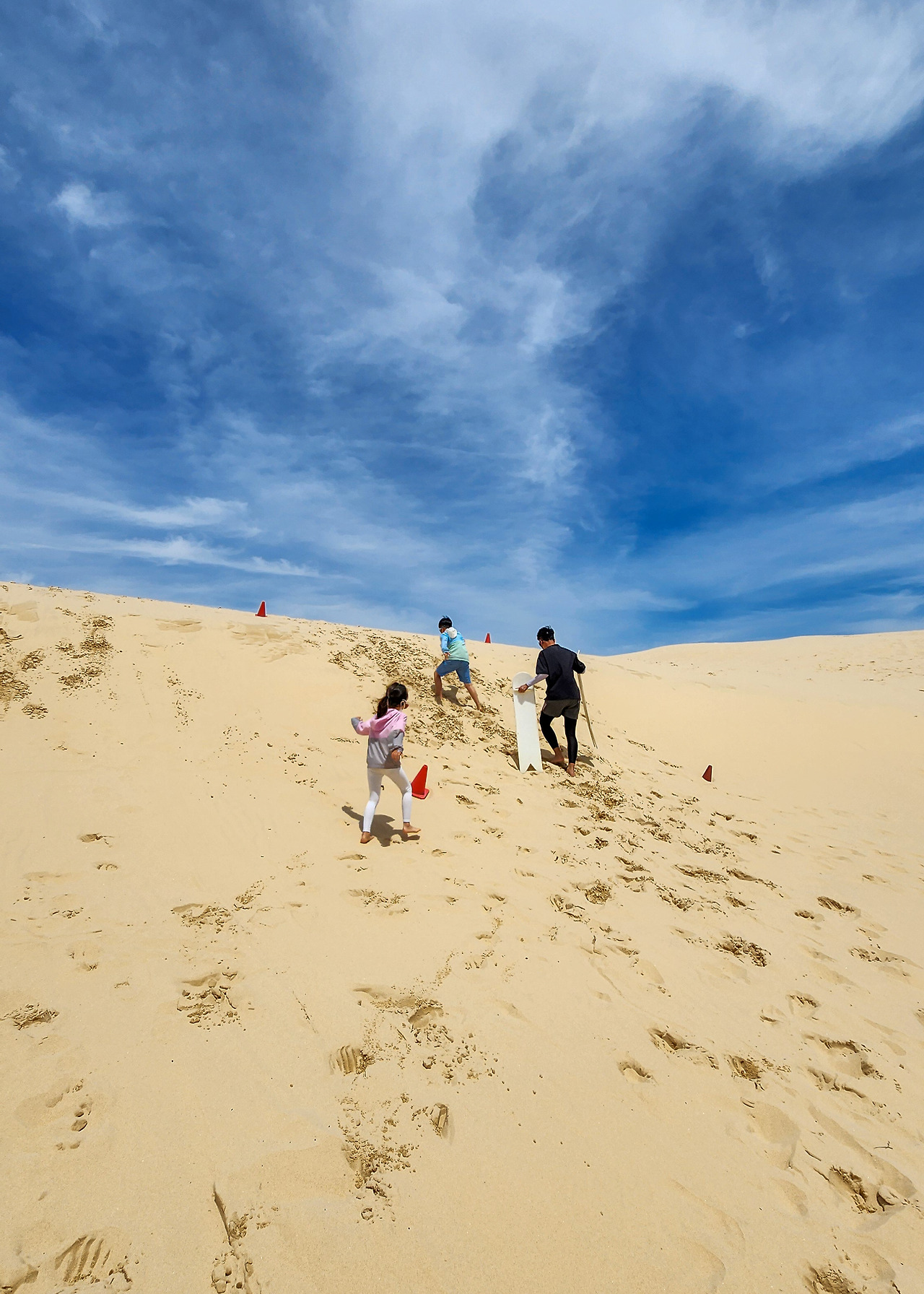 오늘은 내가 가장 기대하던 버킷리스트 중 하나인 포트 스테판에서 모래 썰매를 타는 날이다.