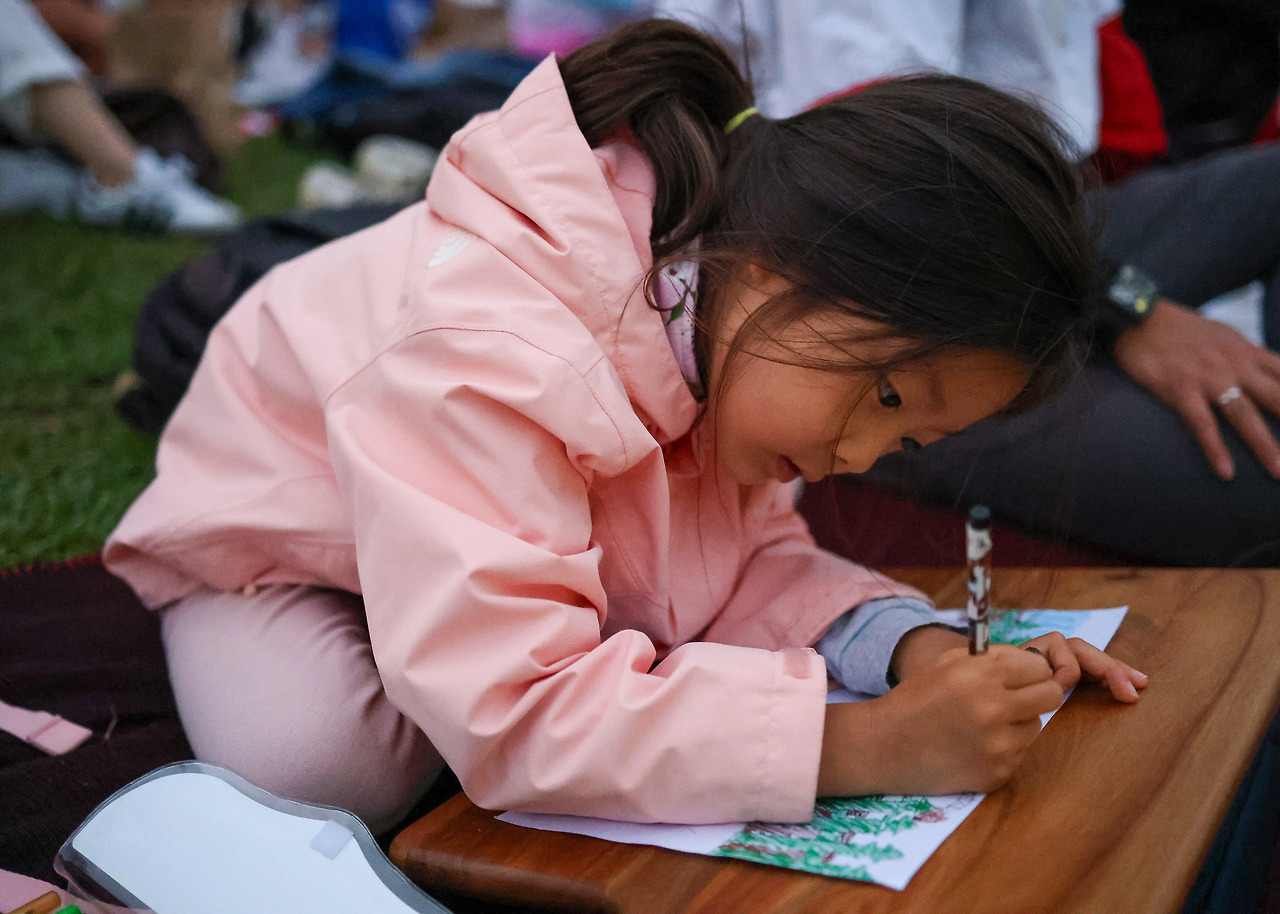 둘째 아이는 캄캄해질 때까지 그림을 그리며 시간을 보냈다.