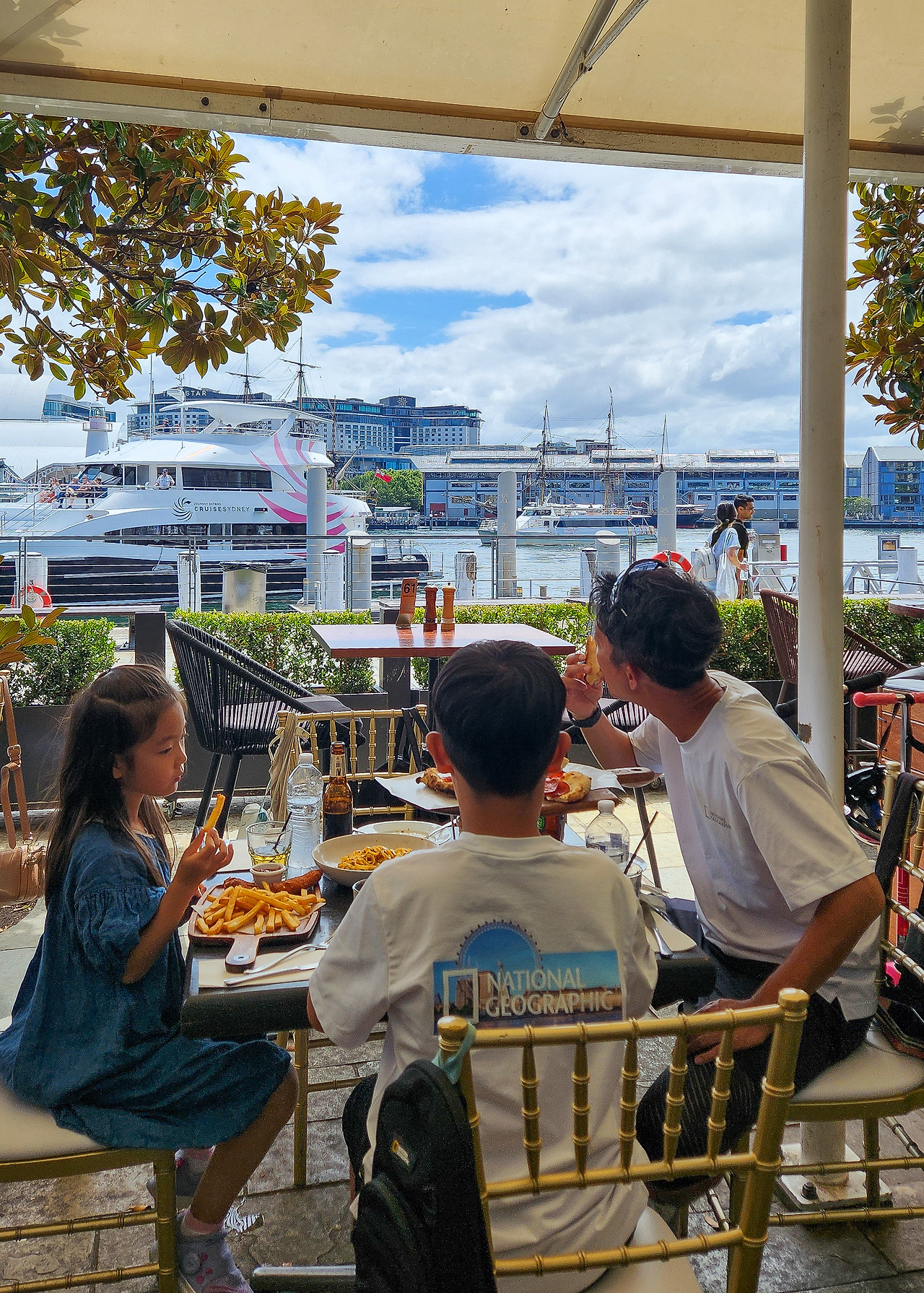 Barangaroo warf를 따라서는 멋진 하버뷰를 감상하며 식사할 수 있는 다양한 음식점들이 줄지어 있는데, 우리도 그중 한 곳에서 점심을 해결했다.