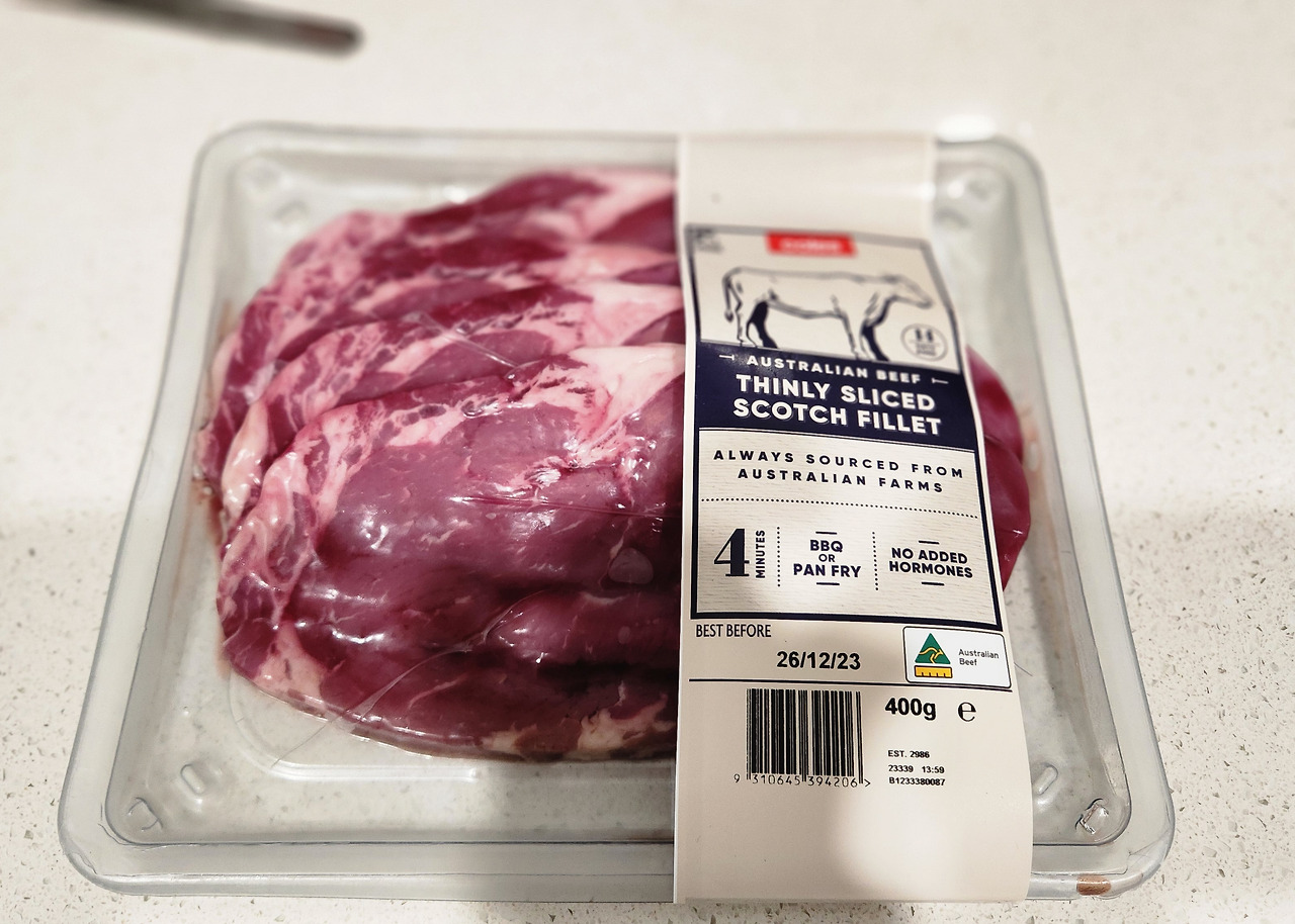 coles에서 16달러에 산 소고기와 함께