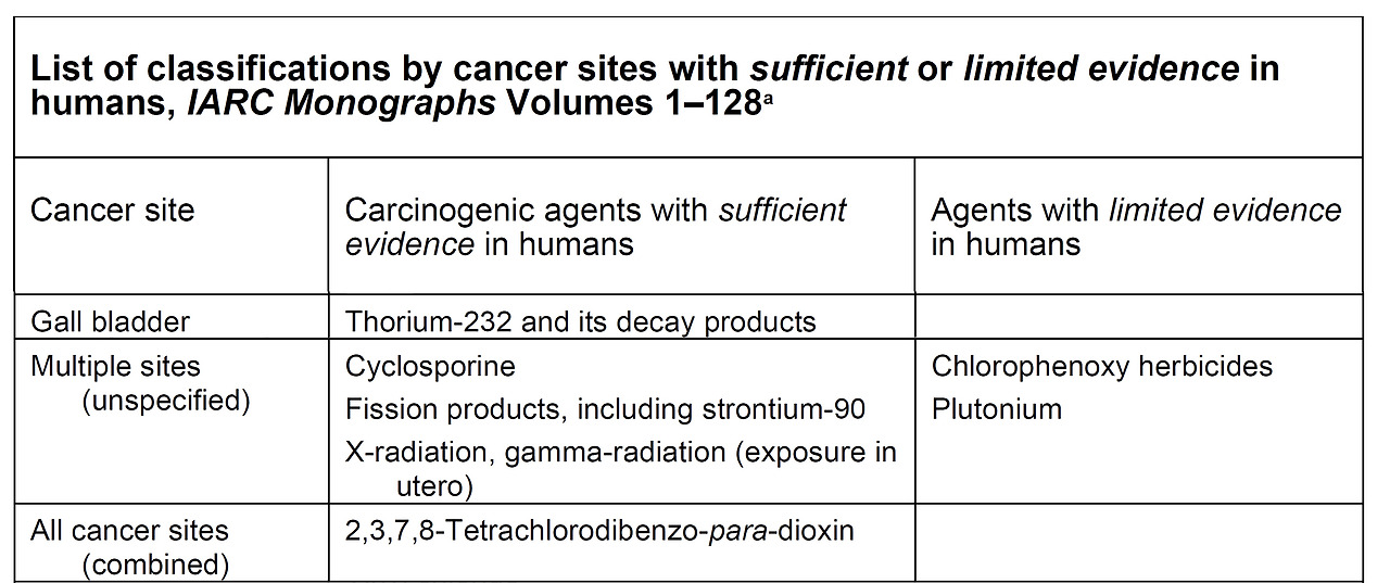 아무래도 아쉬워, 여러 부위에 암을 유발하는 물질을 알아보았다. Cyclosporine이라는 천연 자가면역제가 여러 부위의 암에 관계되는 암 유발물질로 제시되고 있다. 류마티스 관절염, 건선, 크론 병, 장기 이식 시 거부 반응 등을 치료하기 위한 목적으로도 사용되는 천연 화합물이다. Fission products는 핵분열 시 생성되는 물질들이다. X-ray와 감마선은 병원에서 진단 등의 목적으로 사용된다. 여러 부위에 암 유발을 할 것으로 추정되는 물질로는 프로토늄과 Chlorophenoxy 제초제가 있다. 농약류가 생각보다 많이 눈에 들어왔다. 기회가 되면 농산물에 함유되어 섭취될 우려가 있는 암과 관련된 농약류나 중금속류를 정리해 볼 생각이다.