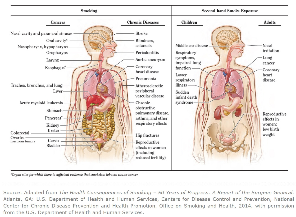 흡연이 암에 관련이 된다는 사실은 널리 알려져 있다. 흡연으로 매년 6백만 명의 사람이 사망하며, 간접흡연도 암을 유발한다. 영국의 경우 비 흡연자 폐암의 14-15% 정도가 간접흡연 때문이라고 추정하고 있다. 특히 간접흡연은 집안, 그러니까 가정에서 특히 문제 된다.