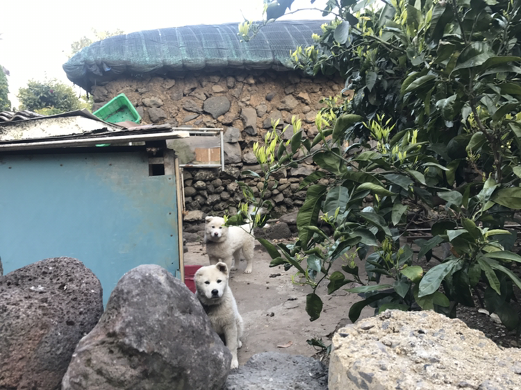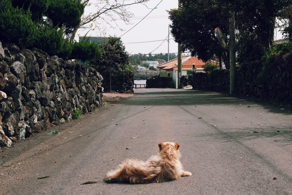 부모님이 살고 계신 위미리에도 개들이 많이 보인다. 가끔은 혼자 유유히 돌아다니기도 하고, 무리를 지어 산책하듯 여유롭게 다니는 모습도 보인다.
