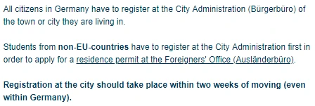 **EU 국가 외에서 온 학생들의 경우 외국인청에서 거주지 허가증을 받기 전 City Administration(시청?)에 가서 거주지 등록을 해야 한다고 나와있다.