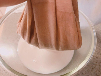 4. 면포에 갈아놓은 우유를 한번 걸러준다.
