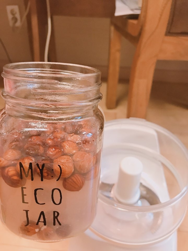 2. 물에 불린 헤이즐넛을 믹서나 푸드 프로세서에 넣는다. [넛츠: 물] 1:3 비율로 넣으면 괜찮은 것 같다. 각자 취향에 맞게. 달콤한 우유를 만들고 싶다면 대추야자를 2-3개 넣어주면 된다.