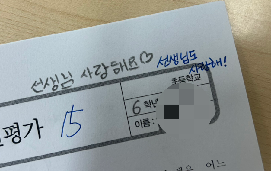 누군가는 시험지 한 귀퉁이에 '선생님 사랑해요'라고 매번 적어 둡니다.