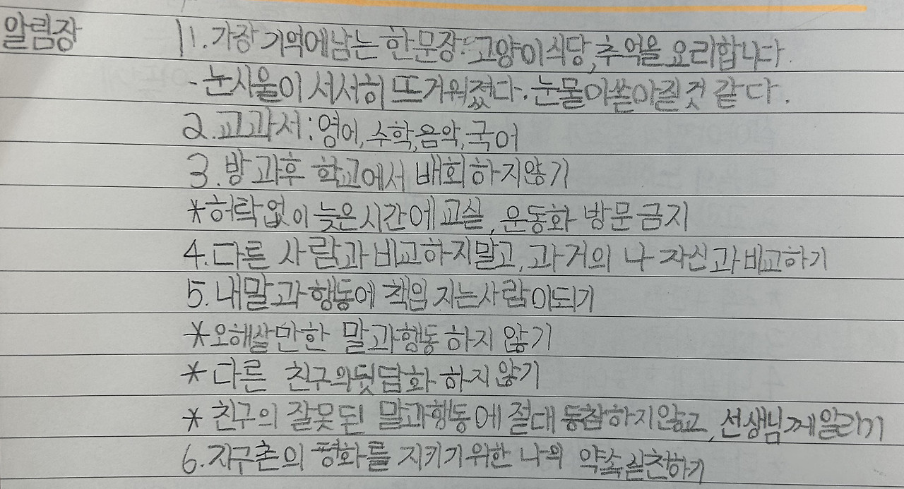 우리 아이들은 만점이 있는지 굉장히 궁금한가 봅니다. 오전 내 같은 질문을 대여섯 번은 넘게 들은 것 같습니다. 오늘 알림장은 이거였네요. 항상 하는 이야기지만 글로 다시 한번 남겨봐야겠습니다.